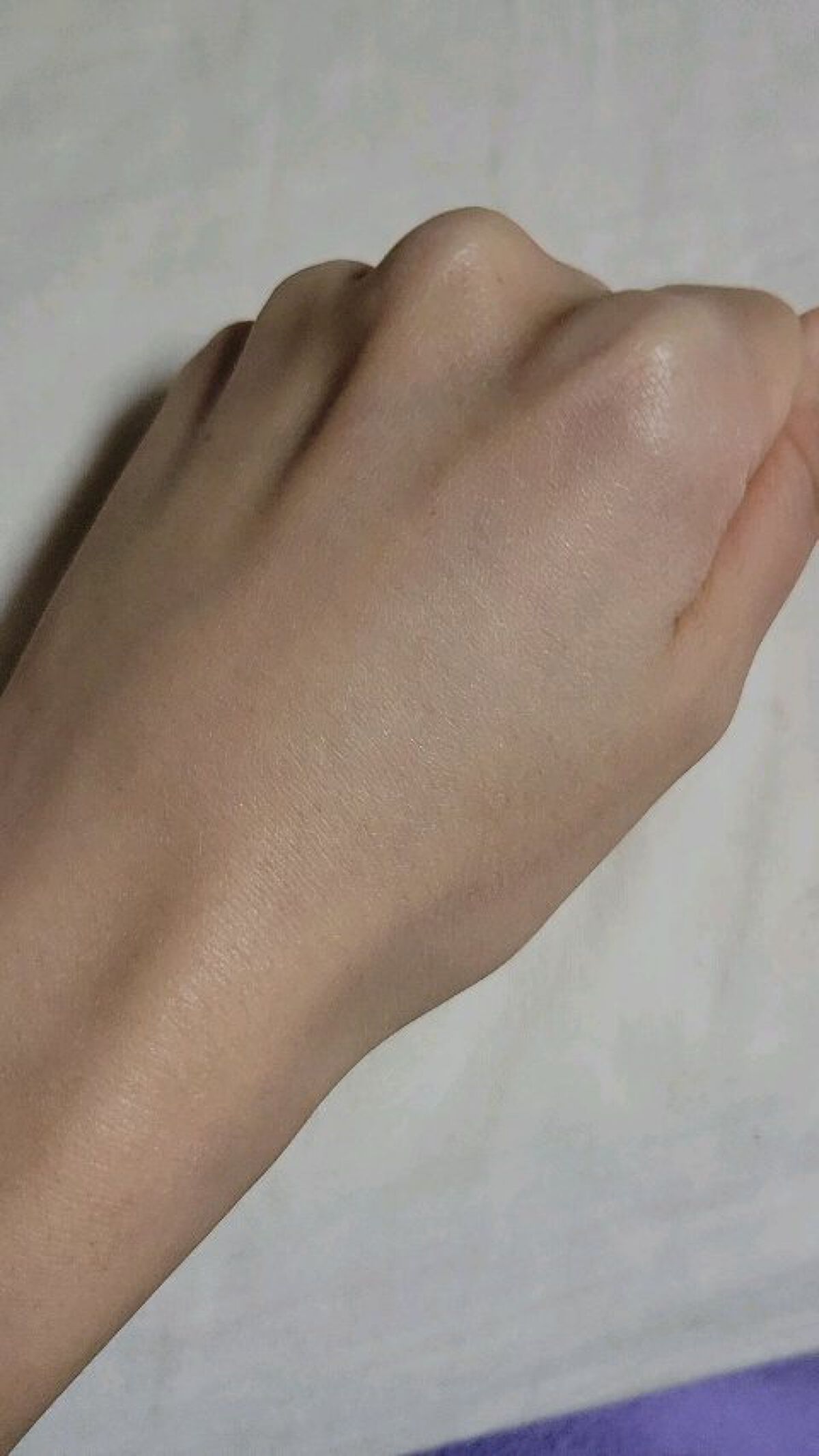 軽くて伸びがよいので、少量でも十分! 厚塗りにもならず、ナチュラルな感じでほんのりトーンアップしたように感じました! 軽くてぴたっと密着してくれる感じなので、ファンデ塗ってます感がなく、とても使い心地がよかったです😊
