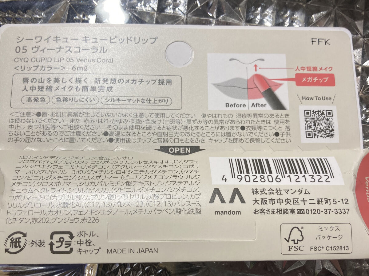 CYQとは!顔のパーツに着目し誰でも簡単にパーツを細工するという、従来あまり提案されてこなかったパーツデザインコスメです。まるでメイク以上、整形未満のような仕上がりで、"わたしの中の一番可愛いわたし"を叶えます。CYQの由来は、『細工(サイク)』です。『細工』というワードには、細やかな日本らしさを表現する要素があり、英文字に展開しました。(Web記載) なんと!こちらリップだけで人中短縮メイクできちゃうんです!!すご…! このメガチップのおかげで塗りやすく、人中短縮メイクしやすく、唇の山にフィットしやすい✨新発想ですよね♪ シルキーマットな仕上がりで、マットはあまり使わないことが多い私ですがこれはムラなく塗れた〜よきかな🥰高発色でご飯を食べても他の商品と比べて落ちづらくよかったです ただし!乾燥しやすいので保湿するリップクリームなどを塗ってから使うことを推奨します(◡ ω ◡)
