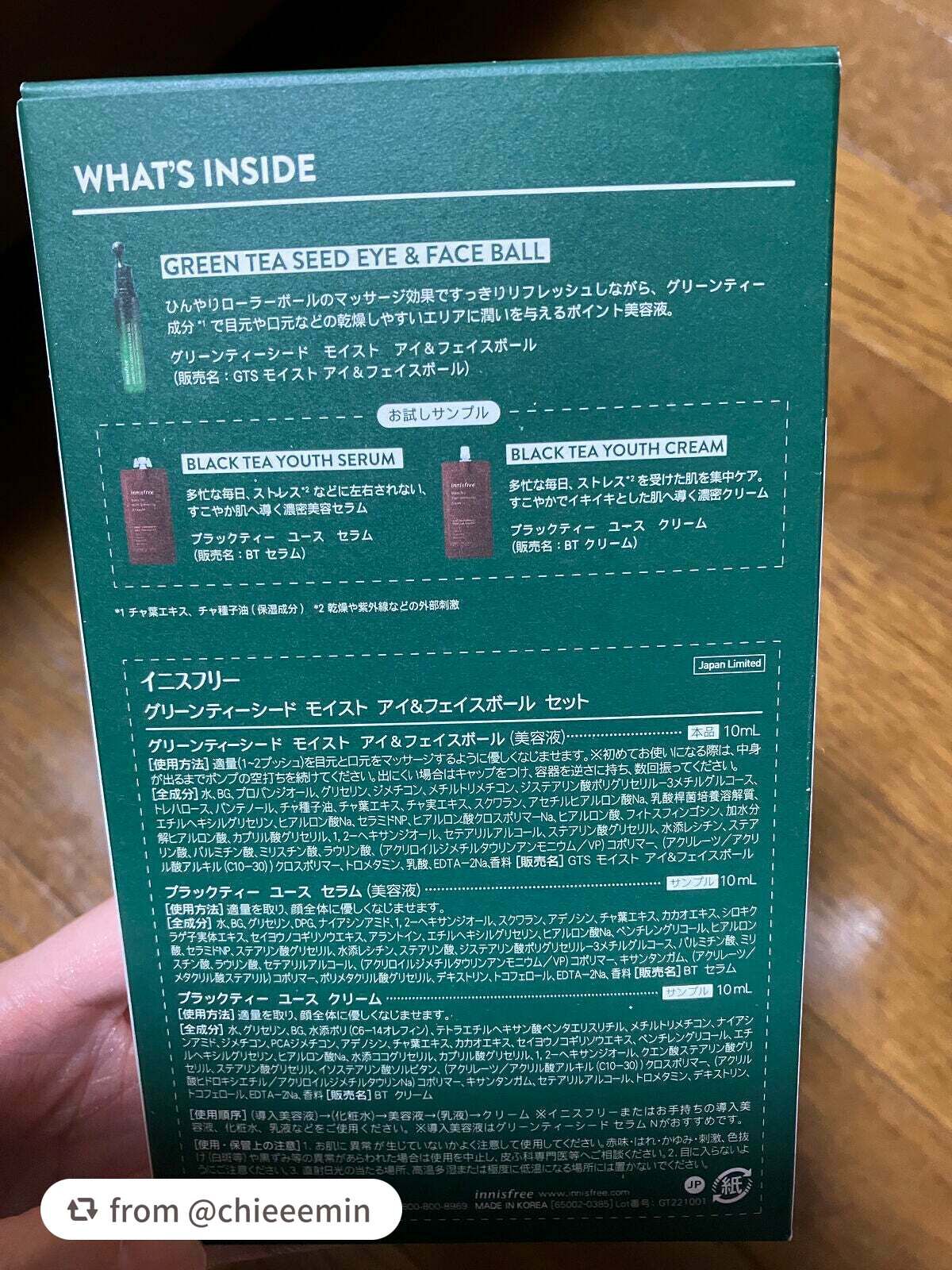 商品詳細情報innisfree グリーンティーシード モイスト アイ&フェイスボール