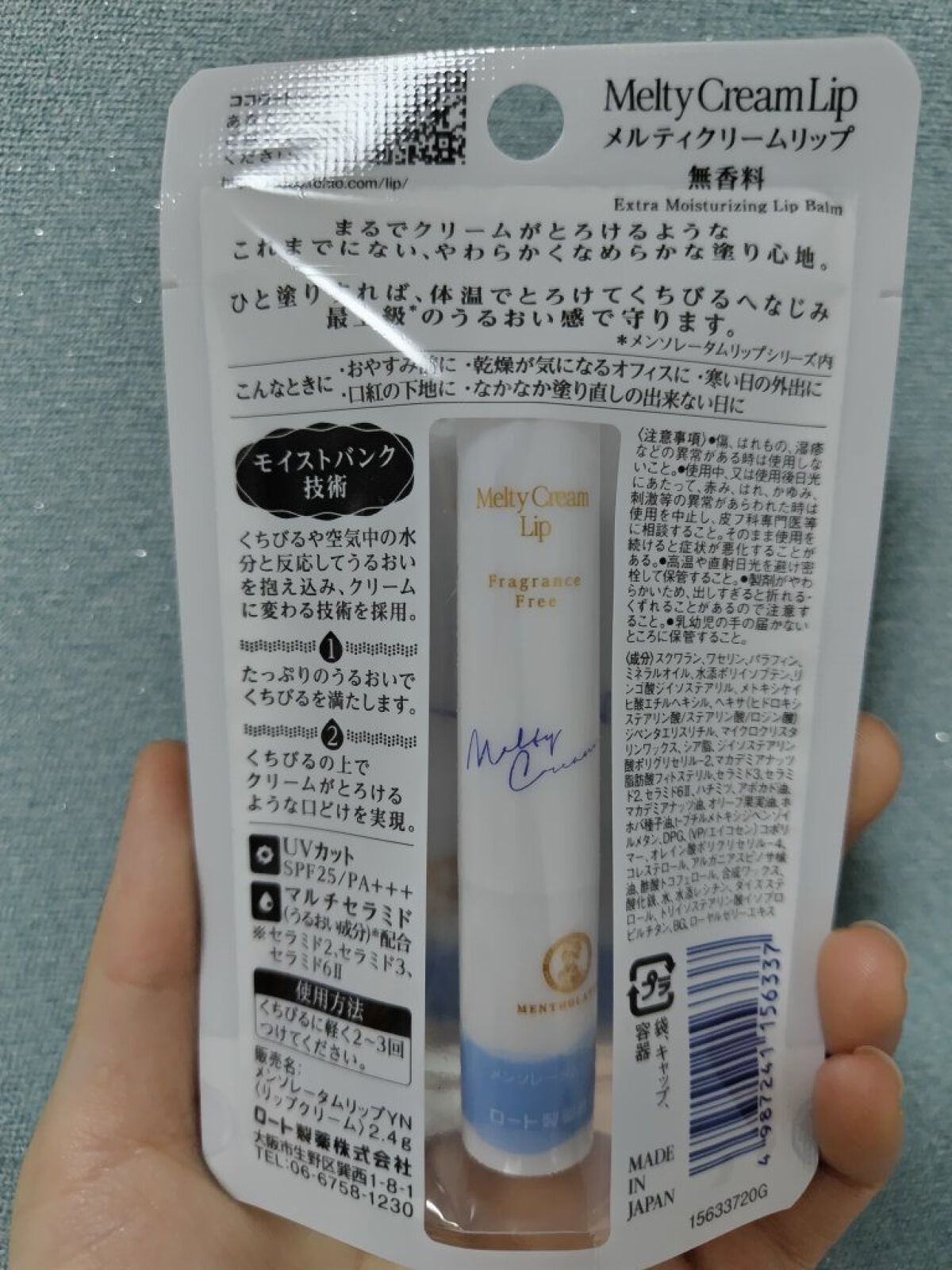 - くちびるや空気中の水分と反応してうるおいを抱え込み、クリームに変わる「モイストバンク技術」を採用。まるでクリームがとろけるような、これまでにない、やわらかくなめらかな塗り心地。ひと塗りすれば、体温でとろけてくちびるへなじみ、最上級*のうるおい感で守ります。 UVカット(SPF25/PA+++)。マルチセラミド(うるおい成分)※配合。*:メンソレータムリップシリーズ内※:セラミド3、セラミド2、セラミド6II