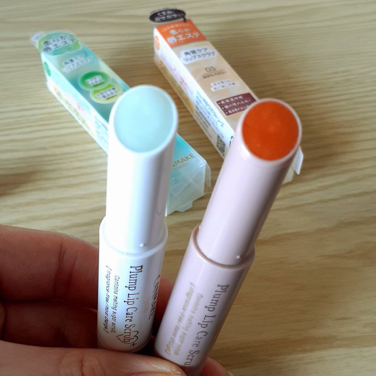 粒が大きすぎなくて塗りやすい プランプ効果も少しあるから、より縦じわにいい 03みかんイエローの方は色がほんのり付く サッと塗るのにちょうどいいコスメ 縦じわが気になる人にオススメ