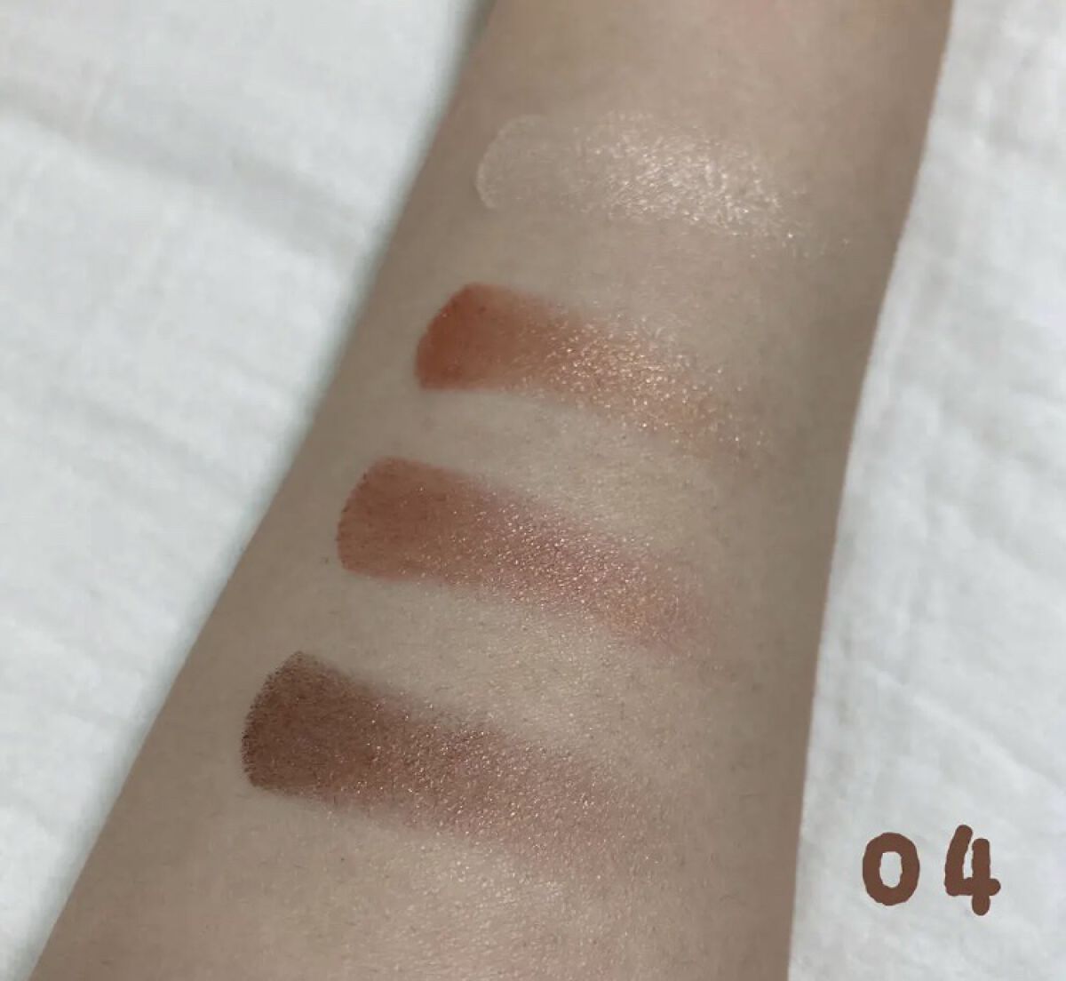 【マルチバーム】乾燥している部分に使える保湿バームです!色は透明で全く付きません。少し保湿力を下げたワセリンっていう印象です! 【コンシーラー】バーム状のコンシーラーです!カバー力はあまり高くないかも。伸びはすごく良くて乾燥もしないので、小鼻の赤みや口角など、カピカピにならず綺麗に色が補正されました!◎ 【ハイライト】肌馴染みの良いハイライト!見た目はベージュに見えますが、肌に乗せると色はあまり出ず、ツヤだけが残ります。ラメというよりツヤって感じ。バーム状なので、派手になり過ぎず程良い濡れ感とツヤ感に仕上がります◎