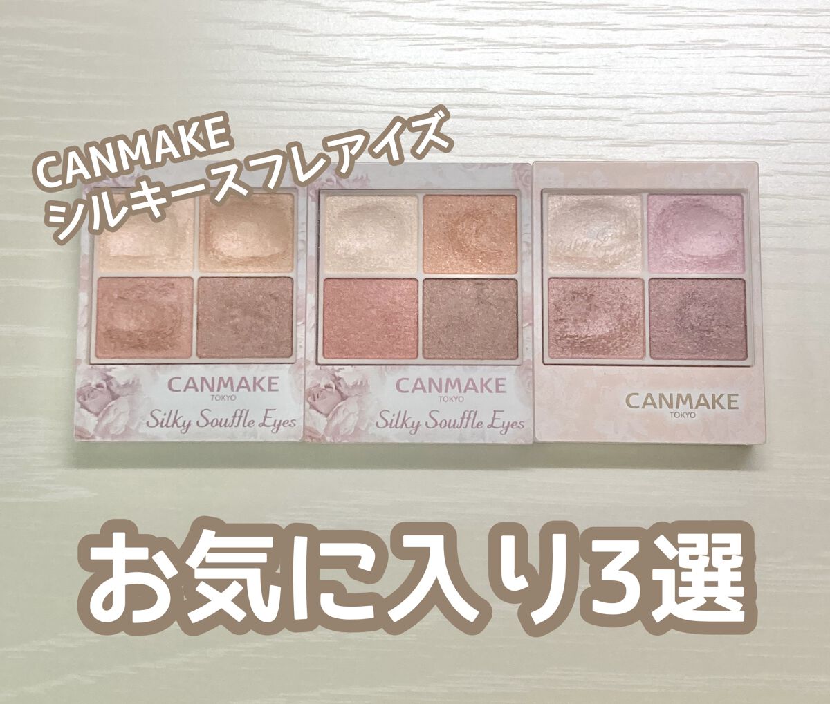 キャンメイクシルキースフレアイズ11ブロッサムシャワー¥825◇質感 4色ともに柔らかくてのびがいいですどのカラーにもたっぷりラメが入っていますが、ラメ飛び、ラメ落ちは気になりませんでした◎ ◇色味 1stブルべ夏/2ndイエベ春 左上→ブル...