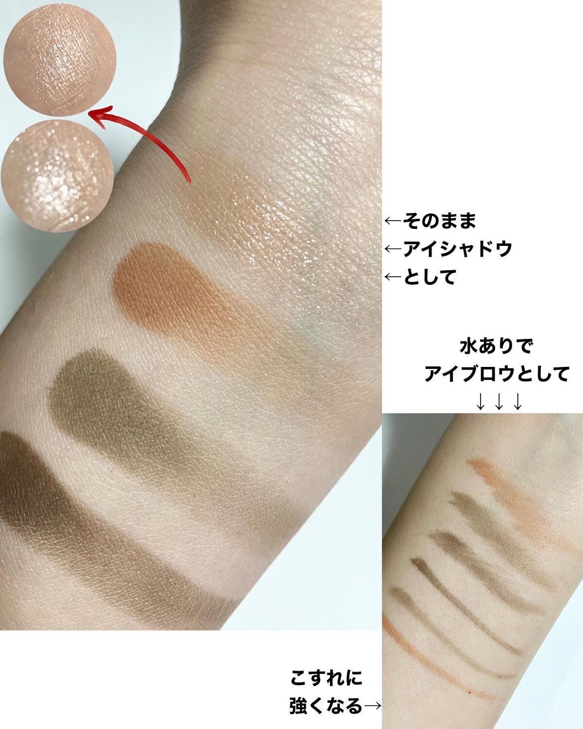 粒子の細かい、ふわっと軽い質感だけど、しっかり密着してくれます。 ぼかしやすく、カラー構成ももグラデーションしやすくなってるから、 ぼかすのが苦手な方には良さそう🎶 ほのかなパール、マットの組み合わせでナチュラルなグラデーションアイの出来上がり🥰