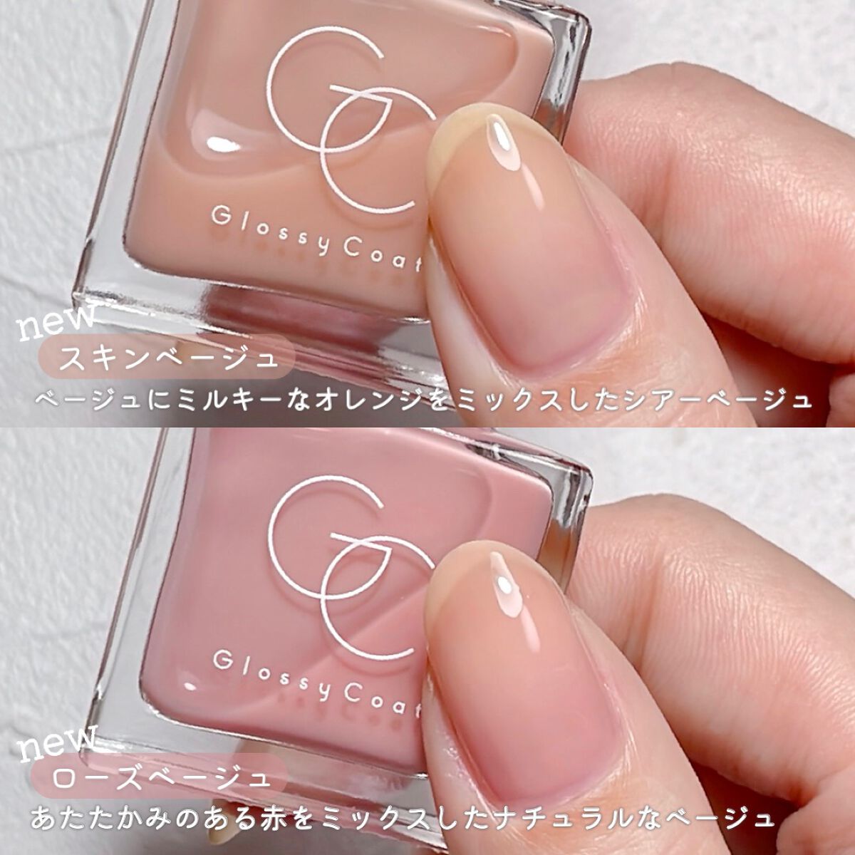 nailholicBE820(親指人差し指小指)nailholicBE302(中指)nailholicGD061(薬指)→薬指にのみユニコーンパウダーを重ねています🦄BE820とBE320は肌馴染みのいいピンクベージュでこの2色を組み合わせる...