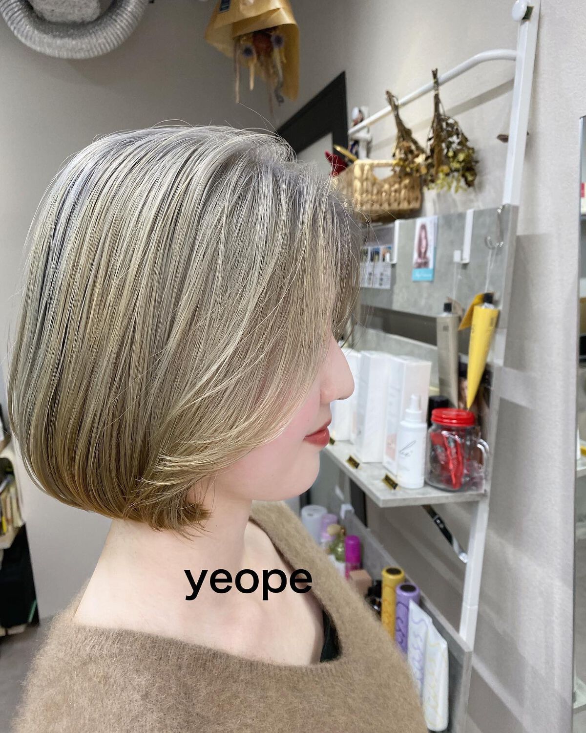 ブリーチで切れてしまって形がなくなってしまった髪型 表面の切れ毛を出来るだけ隠すようにボブスタイルをご提案 丸みを出すようにカット ラインを綺麗に出すカットで首がすらっと見えるデザインに 日本風の柔らかいボブに変身です