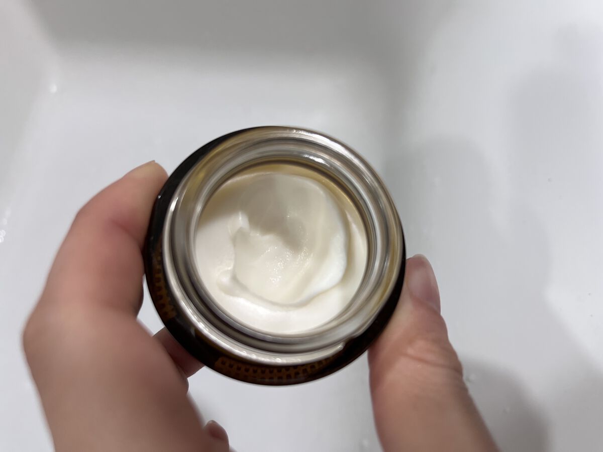 クリームといいつつ、ジェルのようなテクスチャーで重くないし、すっと馴染む。 コッテリ系の乳液とかの後でも全然重くない! 成長因子のEGFとリポソーム入ってる。 DECORTEのリポソームクリームは1万円超えるけど、これは7000円くらいでコスパもいいと思う○