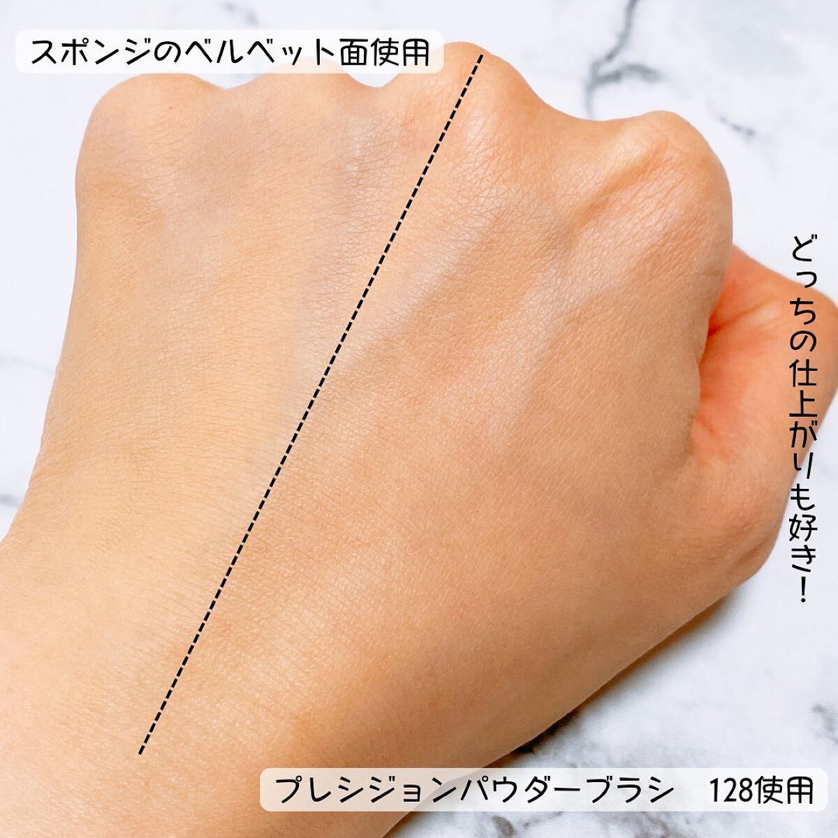 このパウダーファンデ、とにかくスゴい! パウダーファンデって言うと、パサつく・カバー力ないくせに厚塗り感ありありって思われがちだけど、これ全然そんなことない。 めっちゃつるん!とした仕上がり。時間が経ってもキレイ、っていうか時間が経ってからの方が皮脂と馴染んでキレイ。 付属のスポンジはロゴのある面がツルツルでハイカバー仕上げ、裏面はふわふわでナチュラル仕上げになる両面タイプ。