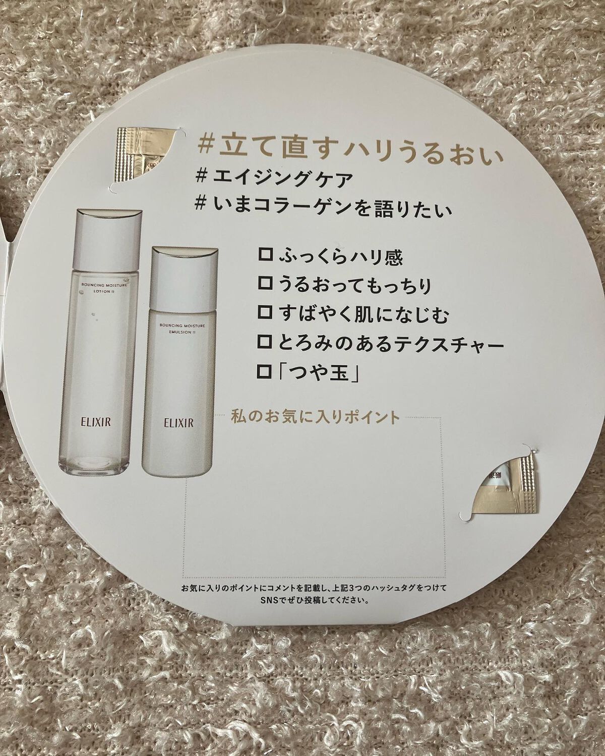 大好きなエリクシール。30代前半の時によく使用しておりました♡ ローションは、ややとろみ?のあるテクスチャで手のひらでもよし、コットンにたっぷり浸してやさしくなじませていきます。 エマルジョンは、乳白色したなめらかなテクスチャ。ローションのあとに使用してますが伸びてなしまやすい!
