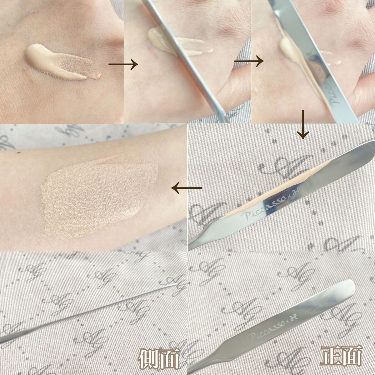 - 薄いレイヤーリングと極強の密着を誇る プロアーティストの道具、メイクアップスパチュラで ベース製品を塗布した後、スポンジを活用した 手軽な仕上がりまで体験してみてください。 ⠀ 持続力と密着力ともに高く、 手軽な使い方と衛生管理で 誰でも簡単に、理想的なベースメイクを完成 ⠀ 薄くて滑らかなベース作りの簡単なツール ピカソメイクスパチュラ