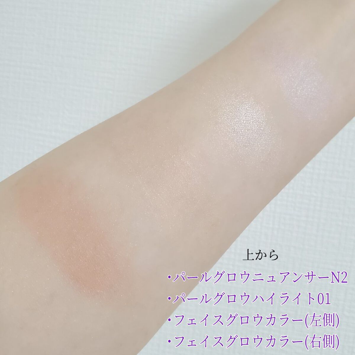透明感あふれるライラックカラーの輝きをふんわり足してくれるニュアンサー✨ 色味も輝きも強すぎないのでどんなチークとも合わせやすいと思います スウォッチは付属のブラシで塗りました 動画は照明の当たる所で撮影しました