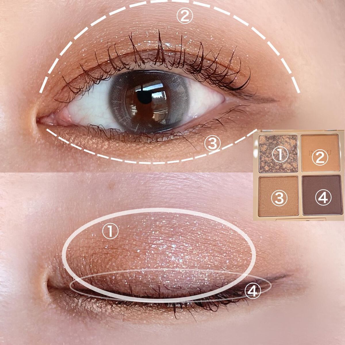 \簡単スモーキーが作れるブラウン/【INTOUテイスティングライフアイシャドウパレット】☑️BW01ヌーディーなベージュ・グレージュブラウン、締め色ブラウン+キラキラスモーキーブラウンで構成された4色パレット🎨全てマットな粉質はしっとりしてお...