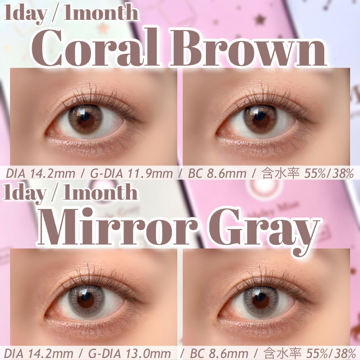 MOLAK TORIC (乱視用) ♥ Dollish brown DIA 14.2mm GDIA 13.2mm BC 8.6mm ちゅるんとブラウンの水光レンズ 私の愛用カラコンの一つでとにかく可愛いんだ、、、細ふちも好み!🌙*゚🤎 Dazzle gray DIA 14.2mm GDIA 13.2mm BC 8.6mm イエベでも使えるグレーカラコンとして以前紹介したことがあるこれ!青っぽくならないグレーで使いやすい✨ 乱視用カラコンが欲しい方は要チェック〜₍ꪔ̤̫₎₍ꪔ̤̫₎₍ꪔ̤̫₎