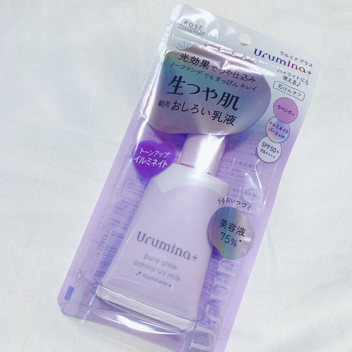 ウルミナプラス生つや肌おしろい乳液イルミネイトラベンダー光効果でツヤ仕込みノーファンデでもすっぴんキレイ。朝用乳液。トーンアップイルミネイト。SPF50PA++++潤い続く美容液75%光拡散パールで毛穴、くすみ、色むら、凹凸を自然にカバー透明...