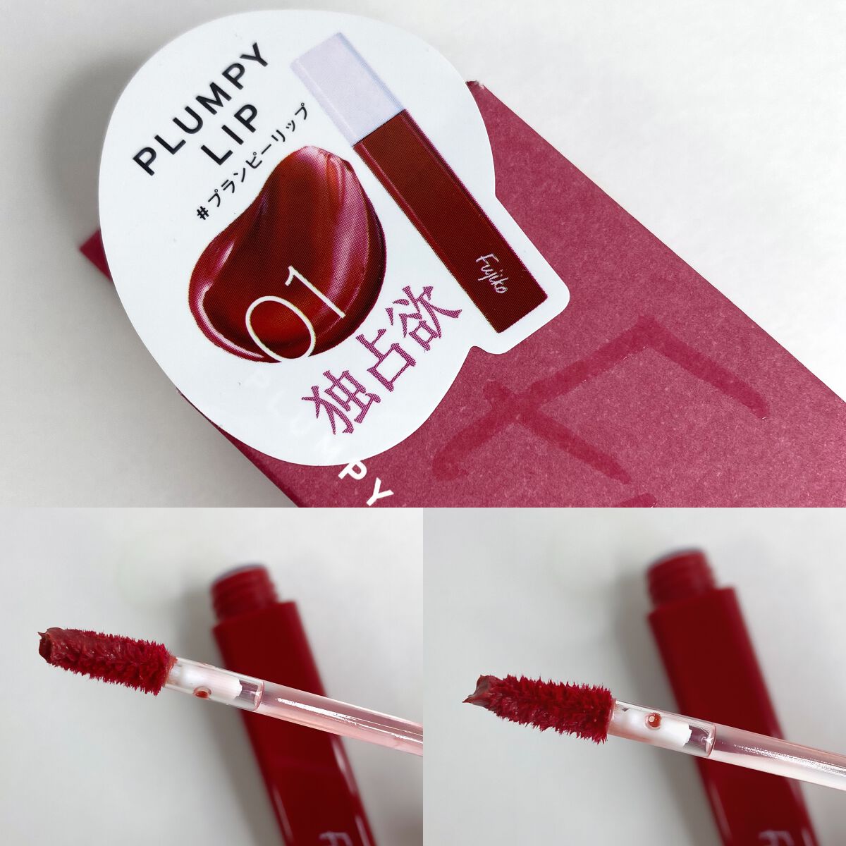 - フジコの新リップは、重ねるほどにパーンと膨んでみえるプランプティント*1。 ぷっくりと存在感のあるリップメイクで唇を主役に。 <プランプ成分(清涼成分)> "メントキシプロパンジオール”採用。 血色感、ボリューム感、クーリング感を演出します。 <オイルウォーターティント処方> 軽やかなオイルが唇に均一に伸び広がり、 FIXING。 時間が経ってもボリューム感と光沢感を演出。 しかもティントだから“落ちにくい”(*2)。 <5種の美容保湿成分配合> アルガンオイル・ツバキ種子油・アーモンド油 ティーツリー葉油・ハチミツエキス *1全てメイクアップ効果 *2効果・効能には個人差があります。