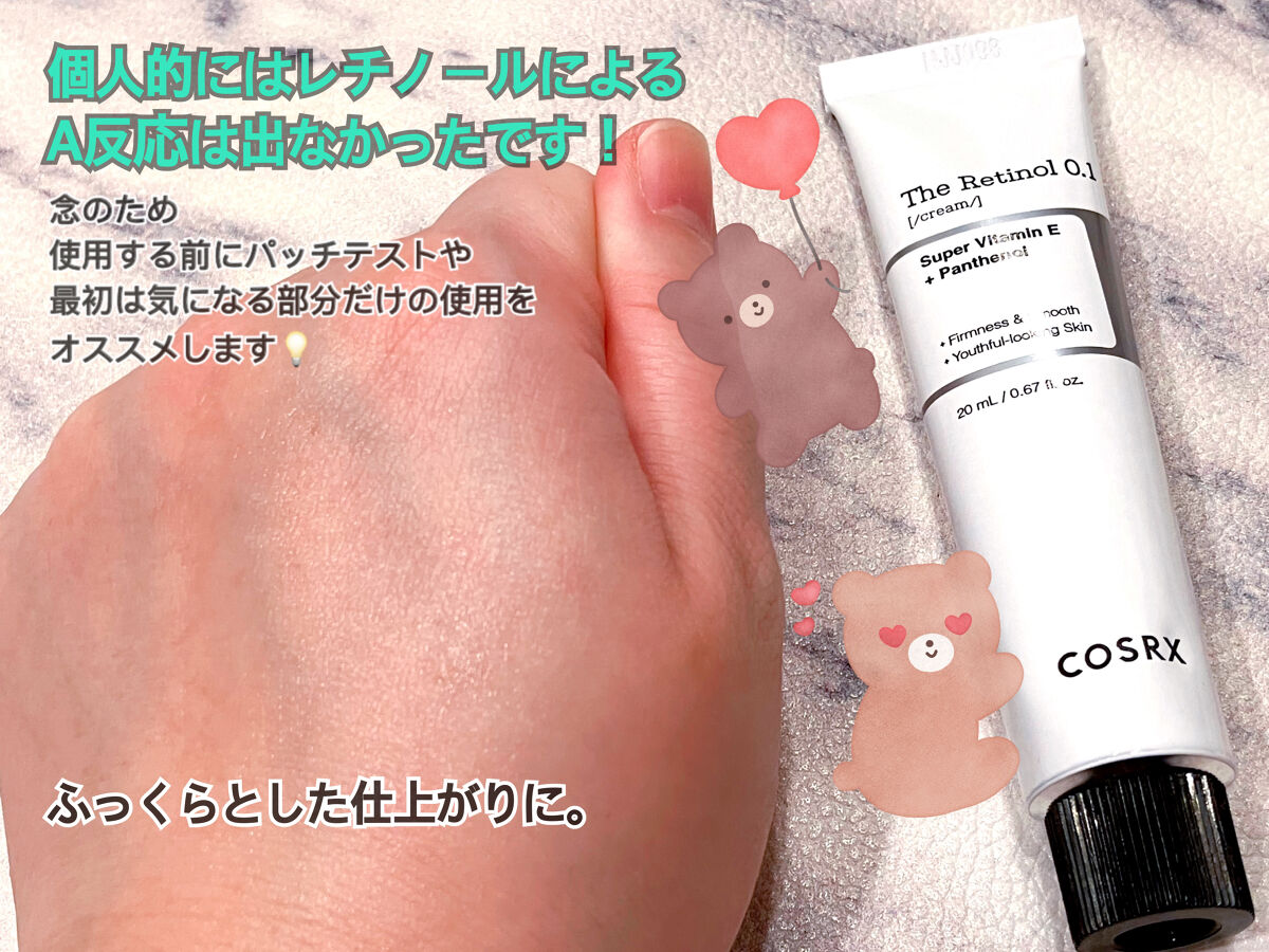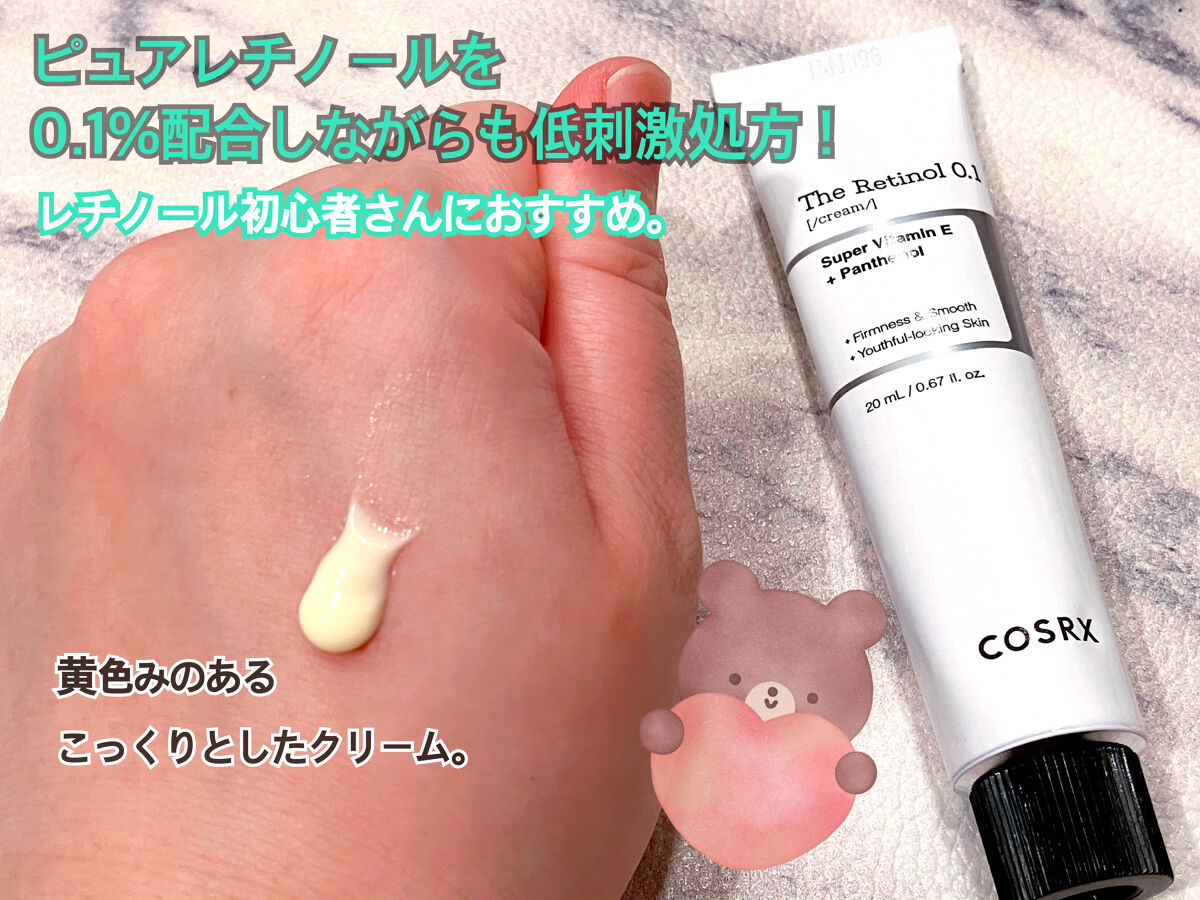 【COSRXTheRetinol0.1Cream】はじめてのレチノール!!初心者でもはじめやすいと聞いてはじめてみました。✔️レチノールって赤みや皮むけが出るって聞いて少し怖かったけど、このクリームはとってもマイルド!✔️パンテノールやビタミ...