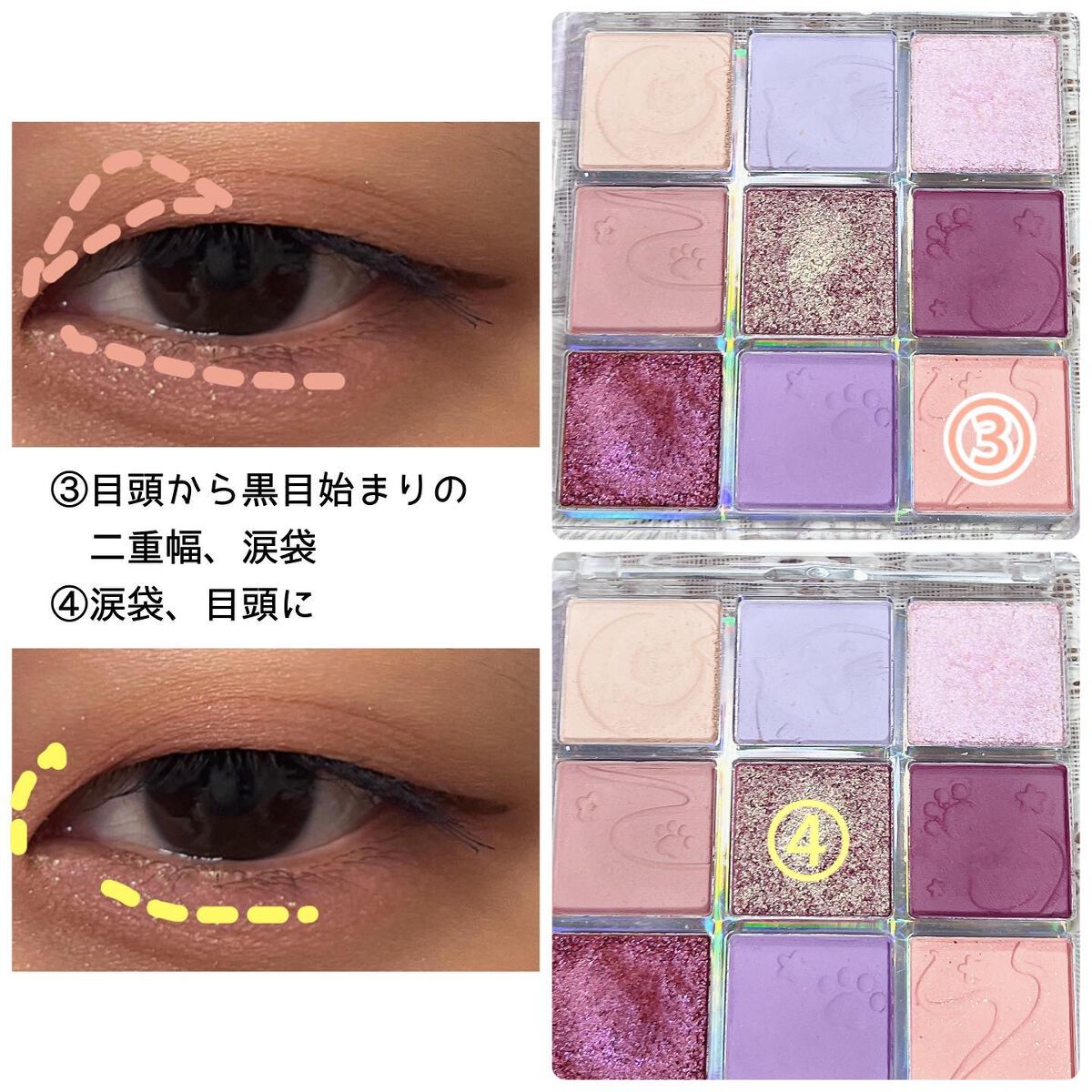 #今日のメイク今日の#デイリーメイク今日はピンクパレット🎨秋だからくすみ感強めのピンクを使ってメイクしてみた👀②のカラーがしっかりくすみピンクなのに目元が暗くなりにくいから使いやすい◎締め色を目頭に入れる時は二重幅ぐらいまでであまり広げずに入...