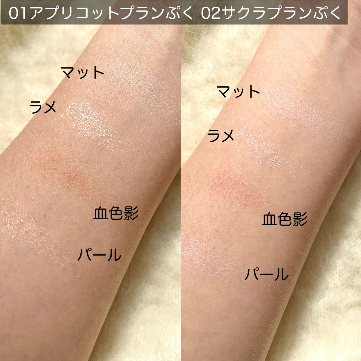 - <01 アプリコットプランぷく> 【A】合成フルオロフロゴパイト、窒化ホウ素、ステアリン酸エチルヘキシル、ジメチコン、ヘキサ(ヒドロキシステアリン酸/ステアリン酸/ロジン酸)ジペンタエリスリチル、シリカ、ジステアリン酸Al、クロルフェネシン、デヒドロ酢酸Na、水酸化Al、トコフェロール、セラミドNP、パルミチン酸レチノール、マイカ、酸化チタン、酸化鉄、赤226、グンジョウ 【B】トリ(カプリル酸/カプリン酸)グリセリル、合成フルオロフロゴパイト、ダイマージリノール酸ジ(イソステアリル/フィトステリル)、タルク、シリカ、ダイマージリノール酸ダイマージリノレイルビス(ベヘニル/イソステアリル/フィトステリル)、カルナウバロウ、クロルフェネシン、デヒドロ酢酸Na、トコフェロール、セラミドNP、パルミチン酸レチノール、マイカ、酸化チタン、酸化鉄、赤226、グンジョウ 【C】トリ(カプリル酸/カプリン酸)グリセリル、タルク、ダイマージリノール酸ジ(イソステアリル/フィトステリル)、ダイマージリノール酸ダイマージリノレイルビス(ベヘニル/イソステアリル/フィトステリル)、カルナウバロウ、シリカ、合成フルオロフロゴパイト、クロルフェネシン、デヒドロ酢酸Na、トコフェロール、セラミドNP、パルミチン酸レチノール、ホウケイ酸(Ca/Al)、マイカ、酸化チタン、酸化鉄、グンジョウ、黄4、赤226 【D】合成フルオロフロゴパイト、タルク、ジフェニルシロキシフェニルトリメチコン、窒化ホウ素、リンゴ酸ジイソステアリル、ミリスチン酸亜鉛、水添ポリイソブテン、ヘキサ(ヒドロキシステアリン酸/ステアリン酸/ロジン酸)ジペンタエリスリチル、クロルフェネシン、デヒドロ酢酸Na、トコフェロール、セラミドNP、パルミチン酸レチノール、マイカ、酸化鉄、酸化チタン、グンジョウ <02 サクラプランぷく> 【A】合成フルオロフロゴパイト、窒化ホウ素、ステアリン酸エチルヘキシル、ジメチコン、ヘキサ(ヒドロキシステアリン酸/ステアリン酸/ロジン酸)ジペンタエリスリチル、シリカ、ジステアリン酸Al、クロルフェネシン、デヒドロ酢酸Na、水酸化Al、トコフェロール、セラミドNP、パルミチン酸レチノール、マイカ、酸化チタン、酸化鉄、赤226、グンジョウ 【B】トリ(カプリル酸/カプリン酸)グリセリル、合成フルオロフロゴパイト、ダイマージリノール酸ジ(イソステアリル/フィトステリル)、タルク、シリカ、ダイマージリノール酸ダイマージリノレイルビス(ベヘニル/イソステアリル/フィトステリル)、カルナウバロウ、クロルフェネシン、デヒドロ酢酸Na、トコフェロール、セラミドNP、パルミチン酸レチノール、マイカ、酸化チタン、酸化鉄、グンジョウ、赤226 【C】トリ(カプリル酸/カプリン酸)グリセリル、タルク、ダイマージリノール酸ジ(イソステアリル/フィトステリル)、ダイマージリノール酸ダイマージリノレイルビス(ベヘニル/イソステアリル/フィトステリル)、カルナウバロウ、シリカ、合成フルオロフロゴパイト、クロルフェネシン、デヒドロ酢酸Na、トコフェロール、セラミドNP、パルミチン酸レチノール、ホウケイ酸(Ca/Al)、マイカ、酸化チタン、グンジョウ、酸化鉄、赤226 【D】タルク、合成フルオロフロゴパイト、ジフェニルシロキシフェニルトリメチコン、窒化ホウ素、リンゴ酸ジイソステアリル、ミリスチン酸亜鉛、水添ポリイソブテン、ヘキサ(ヒドロキシステアリン酸/ステアリン酸/ロジン酸)ジペンタエリスリチル、クロルフェネシン、デヒドロ酢酸Na、トコフェロール、セラミドNP、パルミチン酸レチノール、マイカ、酸化鉄、グンジョウ、赤226 <03 ミルクティプランぷく> 【A】合成フルオロフロゴパイト、窒化ホウ素、ステアリン酸エチルヘキシル、ジメチコン、ヘキサ(ヒドロキシステアリン酸/ステアリン酸/ロジン酸)ジペンタエリスリチル、シリカ、ジステアリン酸Al、クロルフェネシン、デヒドロ酢酸Na、水酸化Al、トコフェロール、セラミドNP、パルミチン酸レチノール、マイカ、酸化チタン、酸化鉄、赤226、グンジョウ 【B】トリ(カプリル酸/カプリン酸)グリセリル、合成フルオロフロゴパイト、ダイマージリノール酸ジ(イソステアリル/フィトステリル)、タルク、シリカ、ダイマージリノール酸ダイマージリノレイルビス(ベヘニル/イソステアリル/フィトステリル)、カルナウバロウ、クロルフェネシン、デヒドロ酢酸Na、トコフェロール、セラミドNP、パルミチン酸レチノール、マイカ、酸化チタン、酸化鉄、グンジョウ 【C】トリ(カプリル酸/カプリン酸)グリセリル、タルク、ダイマージリノール酸ジ(イソステアリル/フィトステリル)、ダイマージリノール酸ダイマージリノレイルビス(ベヘニル/イソステアリル/フィトステリル)、シリカ、カルナウバロウ、合成フルオロフロゴパイト、クロルフェネシン、デヒドロ酢酸Na、トコフェロール、セラミドNP、パルミチン酸レチノール、ホウケイ酸(Ca/Al)、マイカ、酸化チタン、酸化鉄、酸化スズ 【D】タルク、合成フルオ