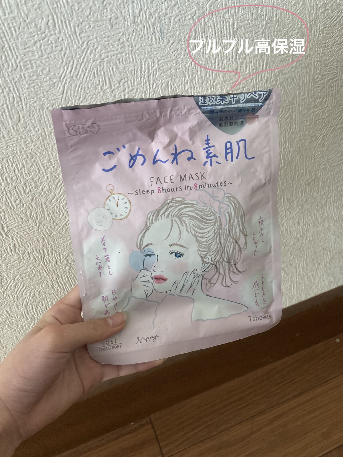 - 【クリアターン ごめんね素肌マスク】 負担をかけて、あれてしまった肌の素肌環境※1をととのえる“速攻集中リペア※2マスク”です。 ① あれがちな肌を素早くコンディションケア! ザクロエキス、桜エキス※3、ウメ果実エキスBG配合し、ゆらぎやすい肌環境をととのえ、肌あれをケアします。また、うるおいケア成分として、ヒアルロン酸、白キクラゲ多糖体BGを配合。外的ストレス※4や不規則な生活の影響を受けやすい肌も健やかでゆらぎにくい肌へみちびきます。 ②敏感肌も使える、弱酸性・低刺激処方 無香料・無着色・無鉱物油・アルコールフリー(エチルアルコール)・パラベンフリー・紫外線吸収剤フリー・シリコーンフリー・パッチテスト済み・アレルギーテスト済み・スティンギングテスト済み・敏感肌自覚者による連用テスト済み(すべての方にアレルギーや皮膚刺激が起きない、刺激感がないというわけではありません。すべての方の肌に合うということではありません。) ③角質ケアもできる!凸凹高密着シート コットン生まれのやわらかな肌触りのベンリーゼを使用。 表面に凸凹のエンボス加工を施しているため、密着性が高く、はがしたマスクでやさしく顔をふきとることで角質ケアもできます。 ※1 うるおい環境のこと ※2 うるおいお手入れのこと ※3 ソメイヨシノ葉エキス、ウメ果実エキスBGはウメ果実エキス・BG(保湿) ※4 乾燥による刺激のこと