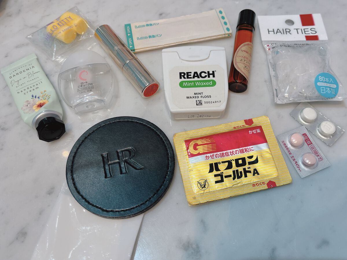 キャンディ🍬 出先で小腹が空いた時や蒸せた時、疲れた時など糖分補給できるので安心っ! アトマイザー 出先で香りが欲しい時や、デート時にも♩ 香りの強さも調節できるのでおすすめ。 常備薬💊 頭痛用にノンフィーブ、風邪薬にパブロンを常備。