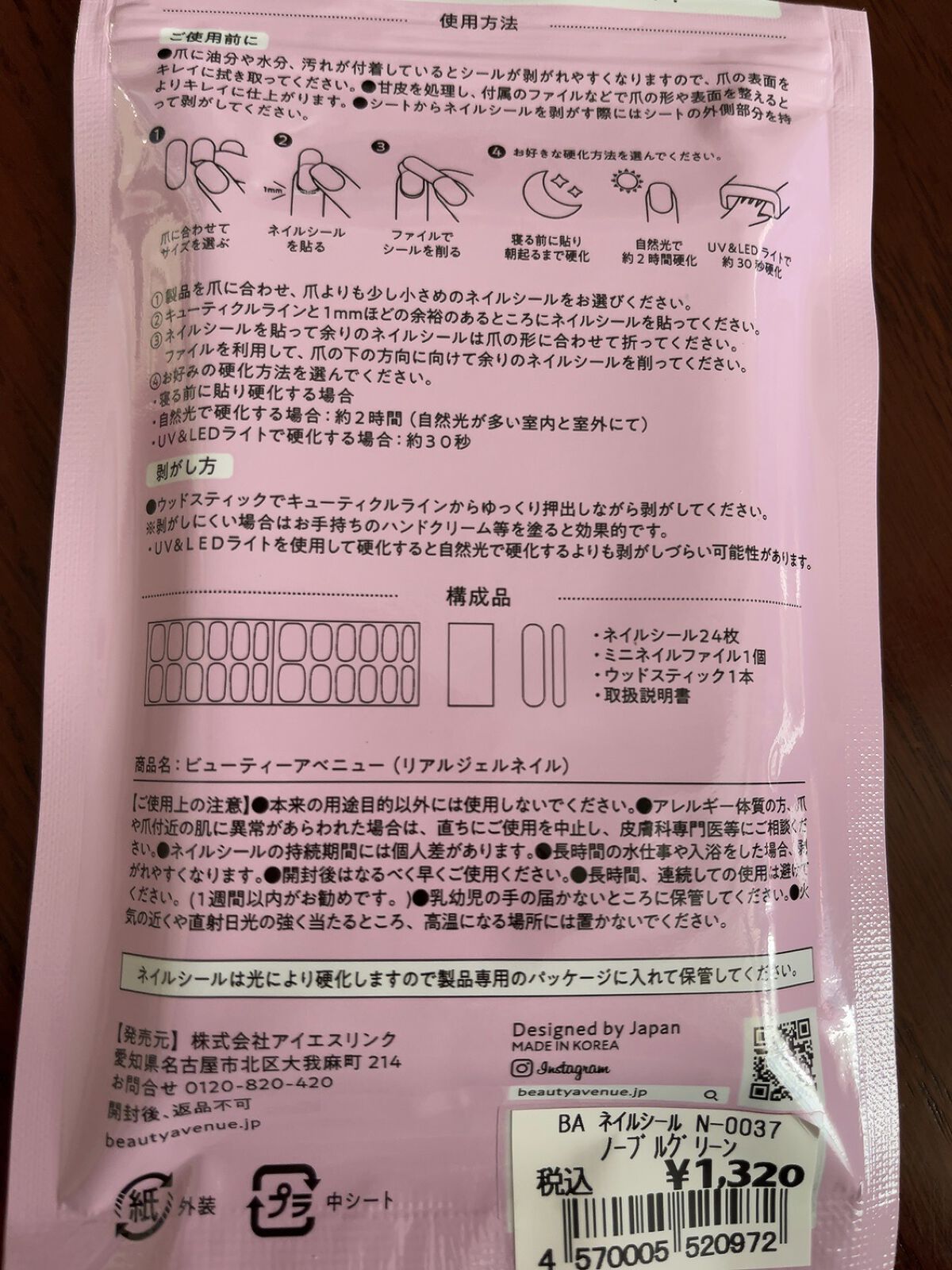 BEAUTY AVENUE リアルジェルネイルシール | 1,320円 |