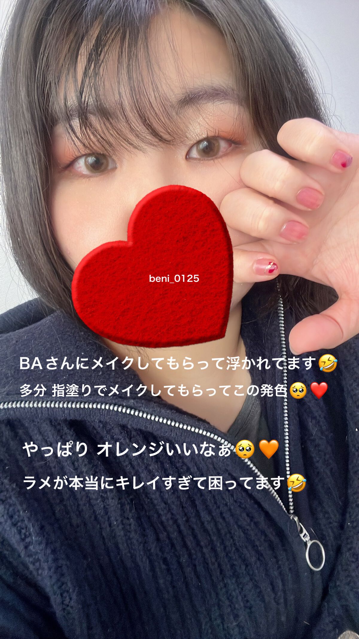 特に右側のラメが大好きです💖 いつも左側のオレンジを薄く塗ってその上から右側のラメを全体的に乗せています✨✨ ラメが気に入りすぎて他のアイシャドウともよく組み合わせています🥰