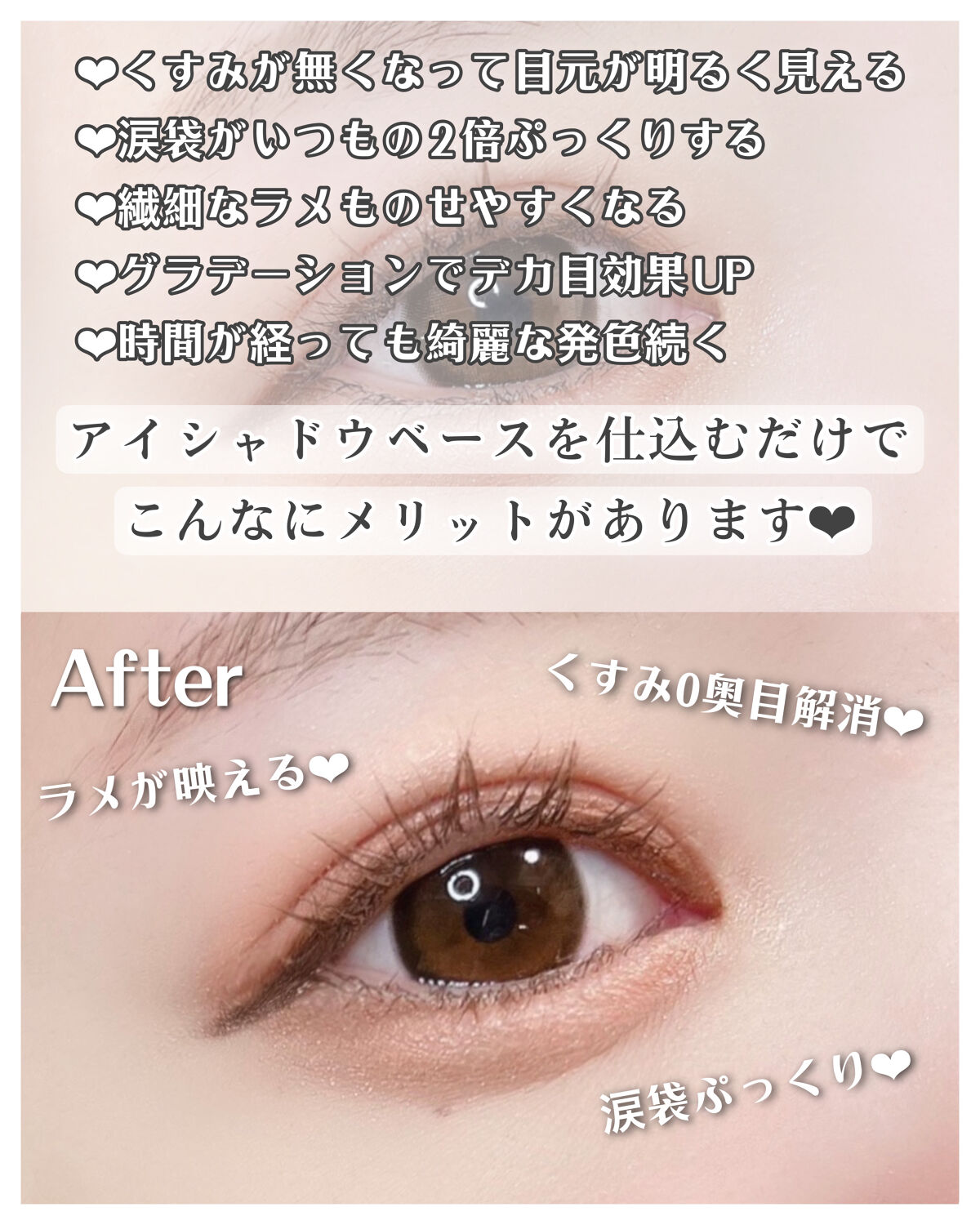 | アイシャドウベースランキング第3位 | アイシャドウがピタッと密着して、使用していない時と比べるととても落ちにくい しっかり色味を発色させてくれる | 詳細を見る | |