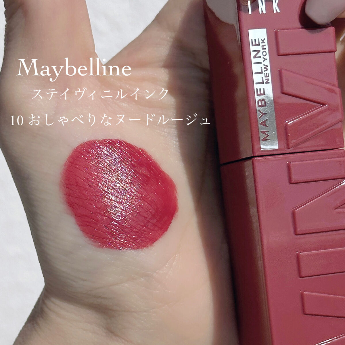 MAYBELLINENEWYORKSPステイヴィニルインク10おしゃべりなヌードルージュ色もツヤも落ちないリップです。鮮やかな発色と濃密なツヤを、シャカシャカ振ってひと塗りで唇を包み込み、うるおい感ある仕上がりに。#MAYBELLINENEW...