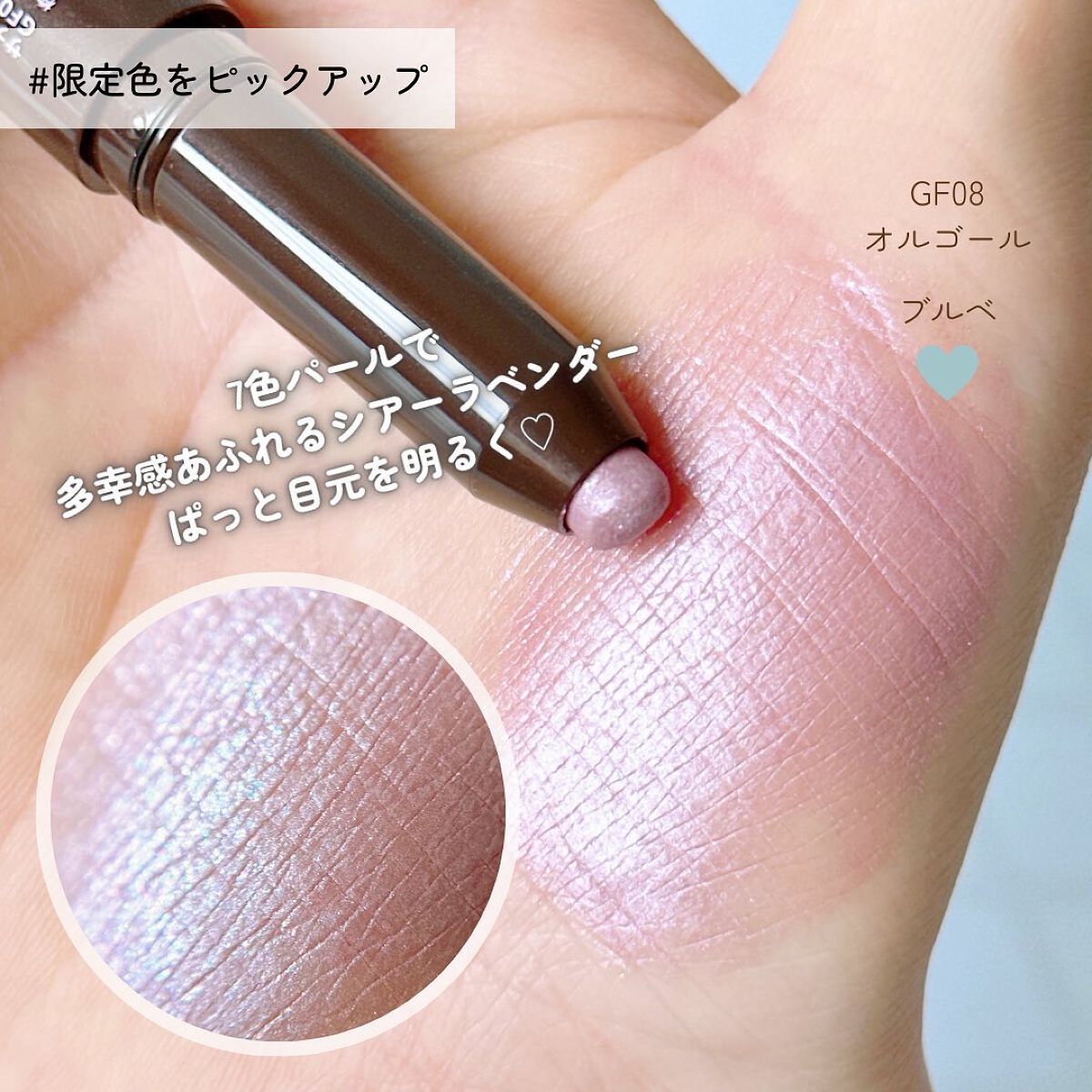 なめらかな質感と繊細な煌めき。 高密着なスティックアイシャドウ ★GF13 シュガースパイス まどろみに満たされるローズベージュ ブルーパールin 若干黄み寄りのローズベージュに青ラメキランキランで可愛い!!