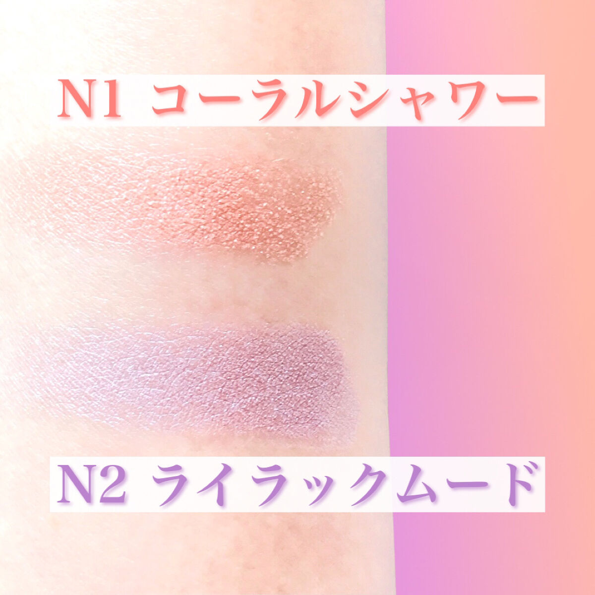 透明感あふれるライラックカラーの輝きをふんわり足してくれるニュアンサー✨ 色味も輝きも強すぎないのでどんなチークとも合わせやすいと思います スウォッチは付属のブラシで塗りました 動画は照明の当たる所で撮影しました