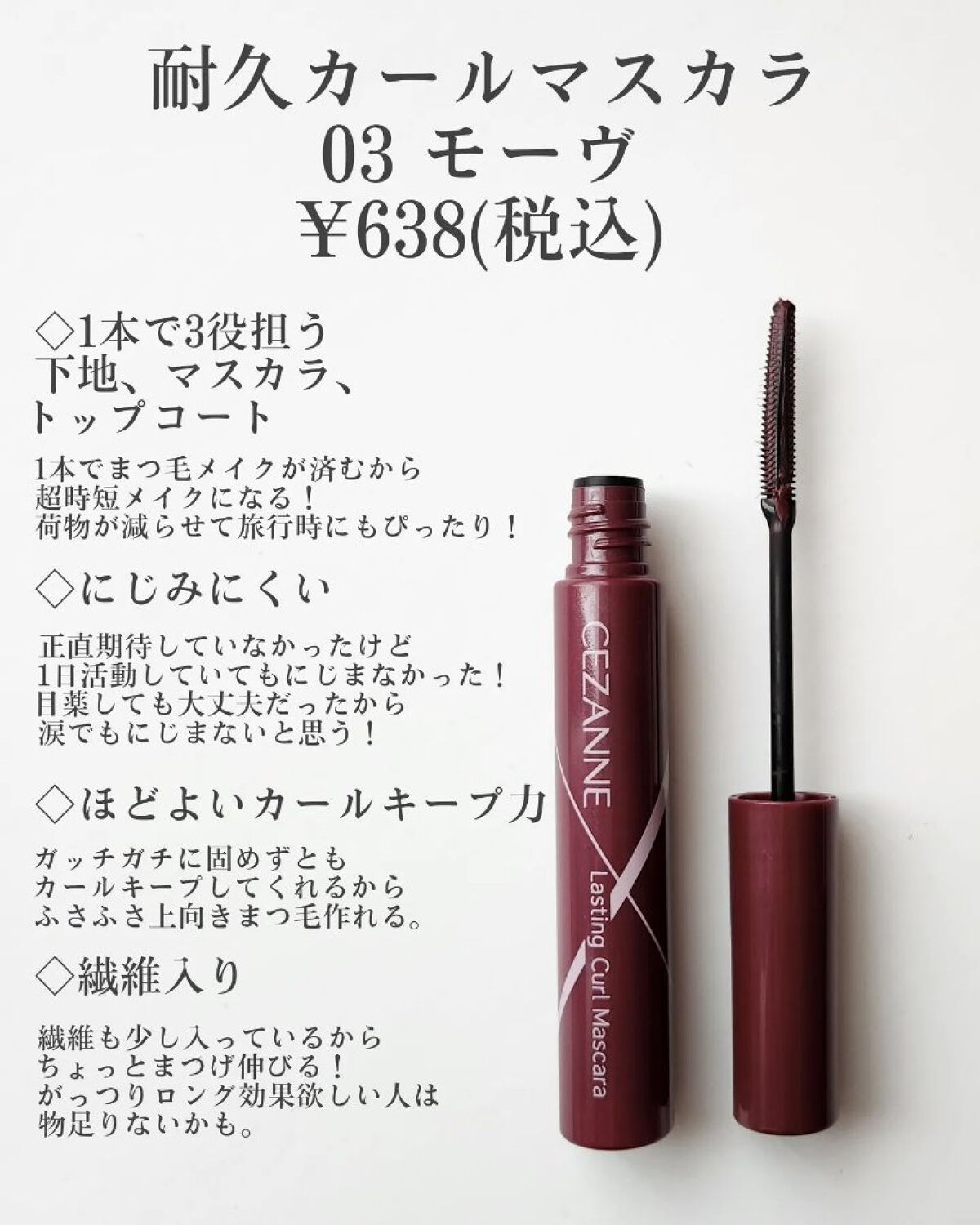 CEZANNE 耐久カールマスカラ | 638円 |