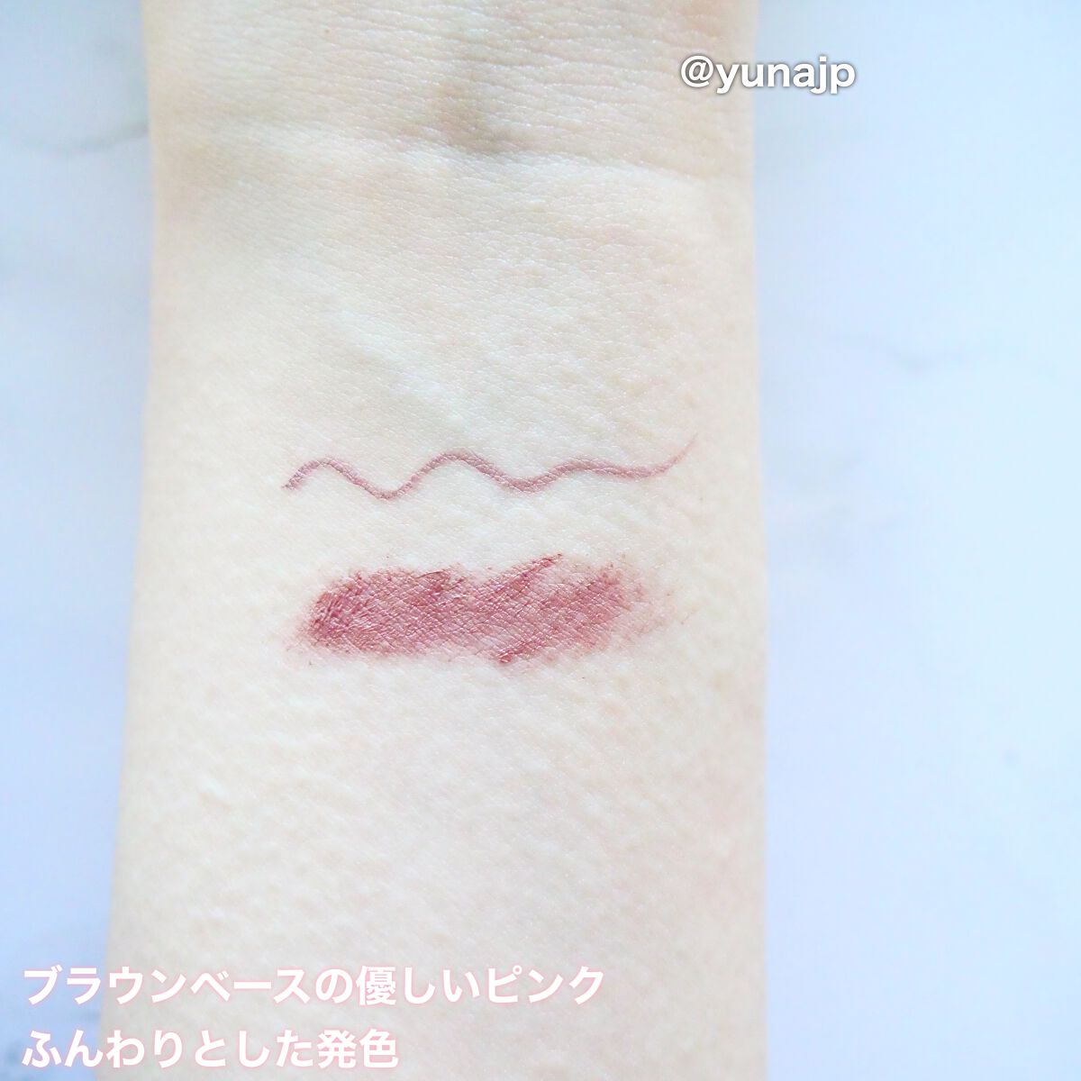 トーンアップアイシャドウの既存色はブラウン系が多くて、もっとピンクっぽい色ほしいなーと願ったら早速この可愛らしいピンクブラウンが発売されました♡ 初めてほしい配色が出たので買ってみたら一番驚いたのはやはり粉質ですね! プチプラと思えないしっとりした粉質で肌に塗ると綺麗に密着します。 パレットの見た目はピンクですが、実際の発色は甘くなりすぎず年齢を問わず使えるくすみピンクブラウンになります。