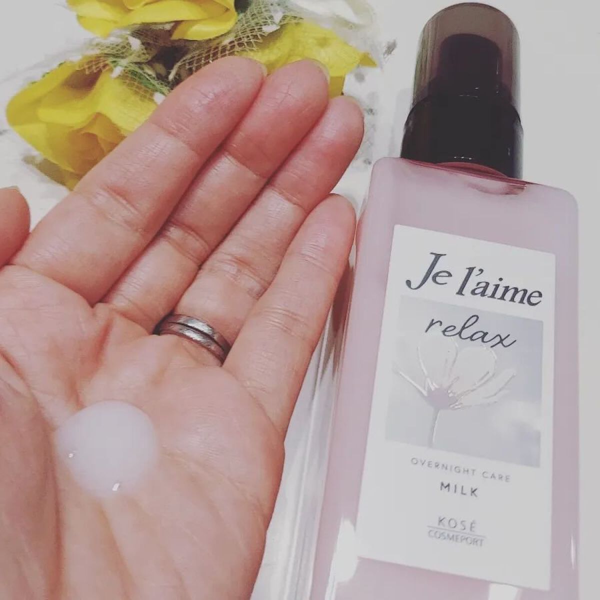 手に出すととってもやわらかなテクスチャーで、ほんのりパープルのクリームがでます。 香りもとっても良くてほのかに香る、お気に入りです。 色ムラ補正とUVカットの両方に期待したいです!