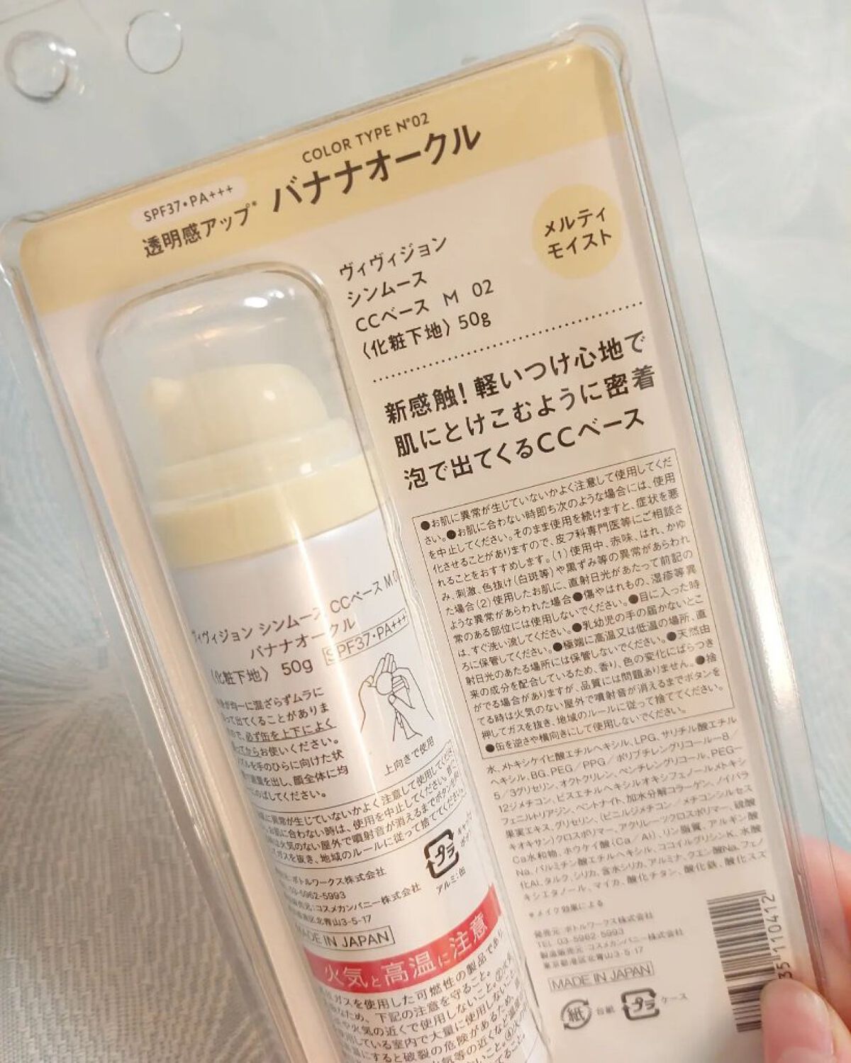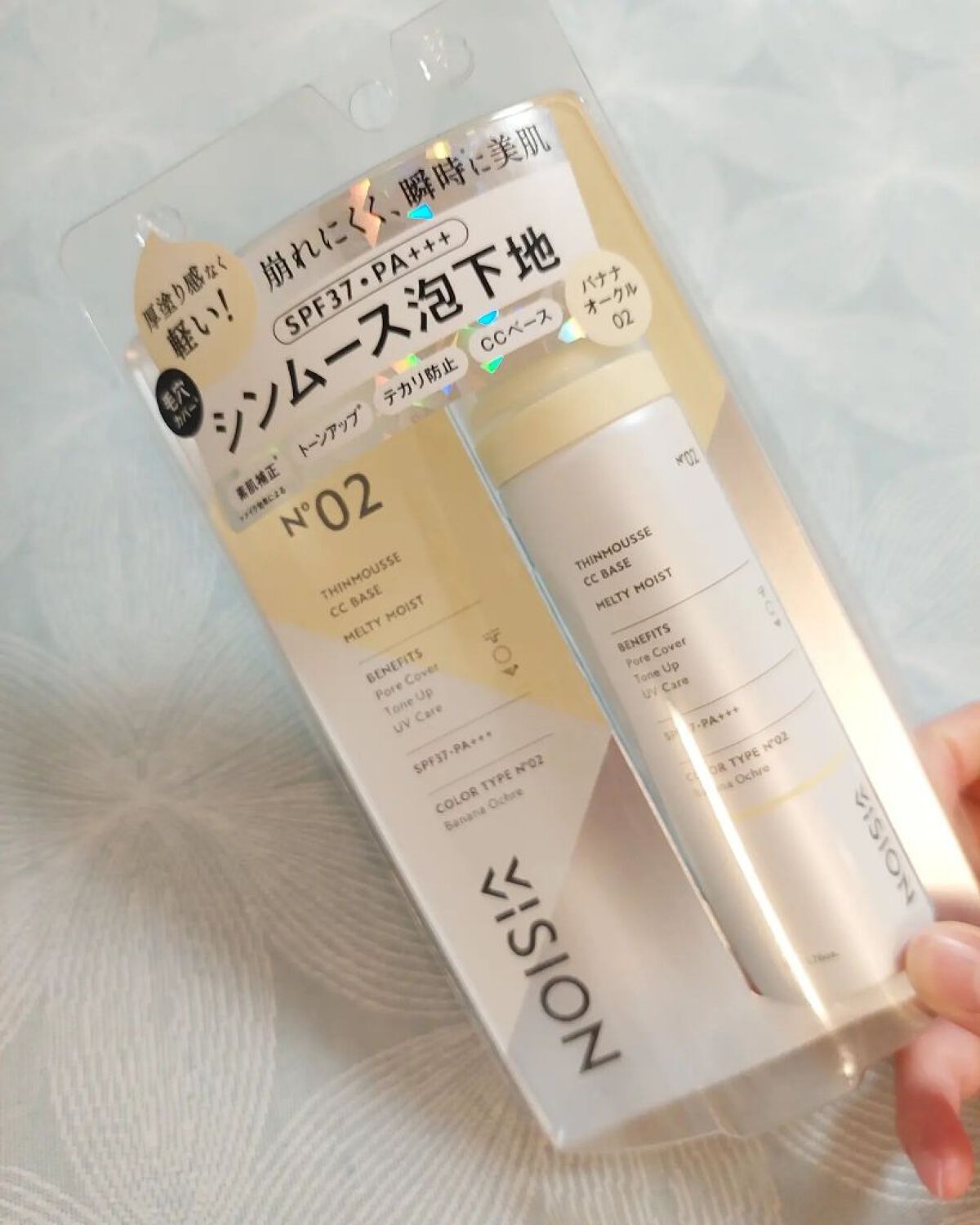 【軽泡ムース🫧バナナ色の密着下地】VIVISIONシンムースCCベースM02バナナオークル参考価格1,980円(税込)瑞々しい泡ででてくる化粧下地♡すごく伸ばしやすくてバババーっと塗りやすい◎毎回たくさん出しがちになってしまうからウェットティ...