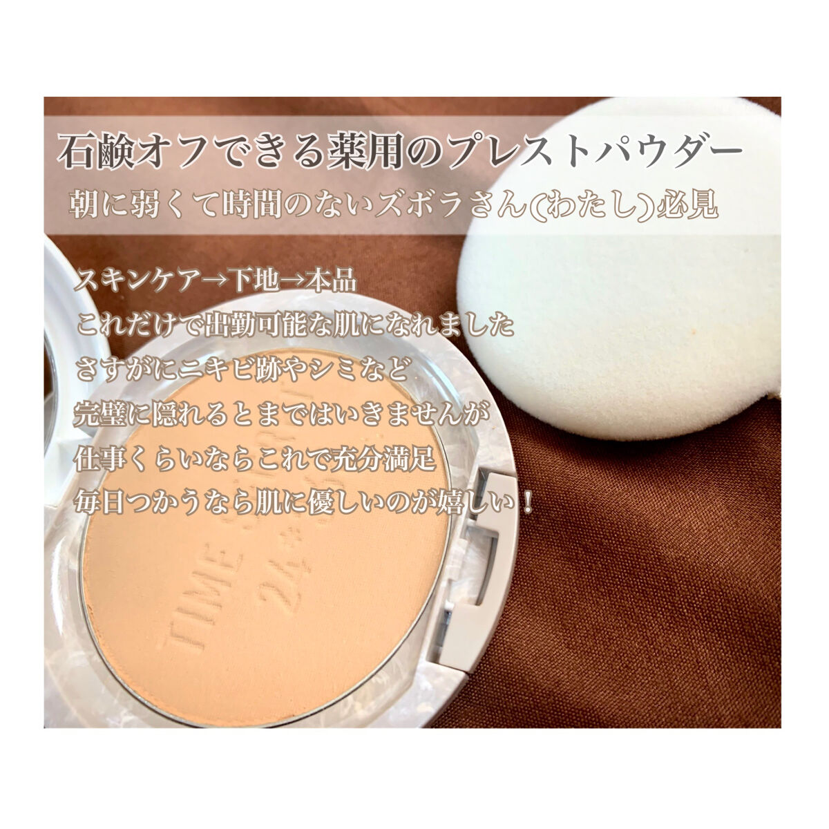 TIMESECRETミネラル薬用プレストパウダー¥1,980〜石けんでオフできるのは嬉しい!プレストパウダータイプパウダーなのにハイカバーなのに厚塗り感がないから使いやすい!つけ心地も軽い!ベースとしてタイムシークレット ミネラル 薬用スキン...