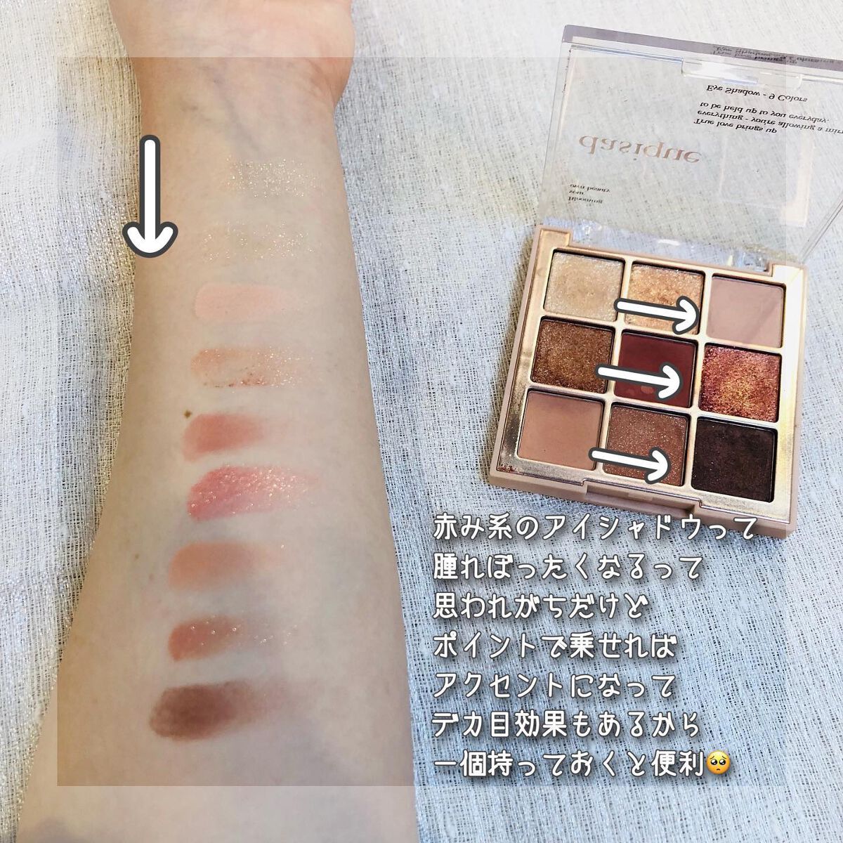 この淡さ、、、深み、、、くすみ、、 ミューテッドサマーさんドンピシャでは⁉️ ラメも自然で、デイリーメイクにピッタリ! 深いカラーも多いので、しっかりメイクしたいときにも使えちゃいます! わたしのためのパレットか?!とずっと欲しかったのですが、今回のメガ割でお得に変えました🎶