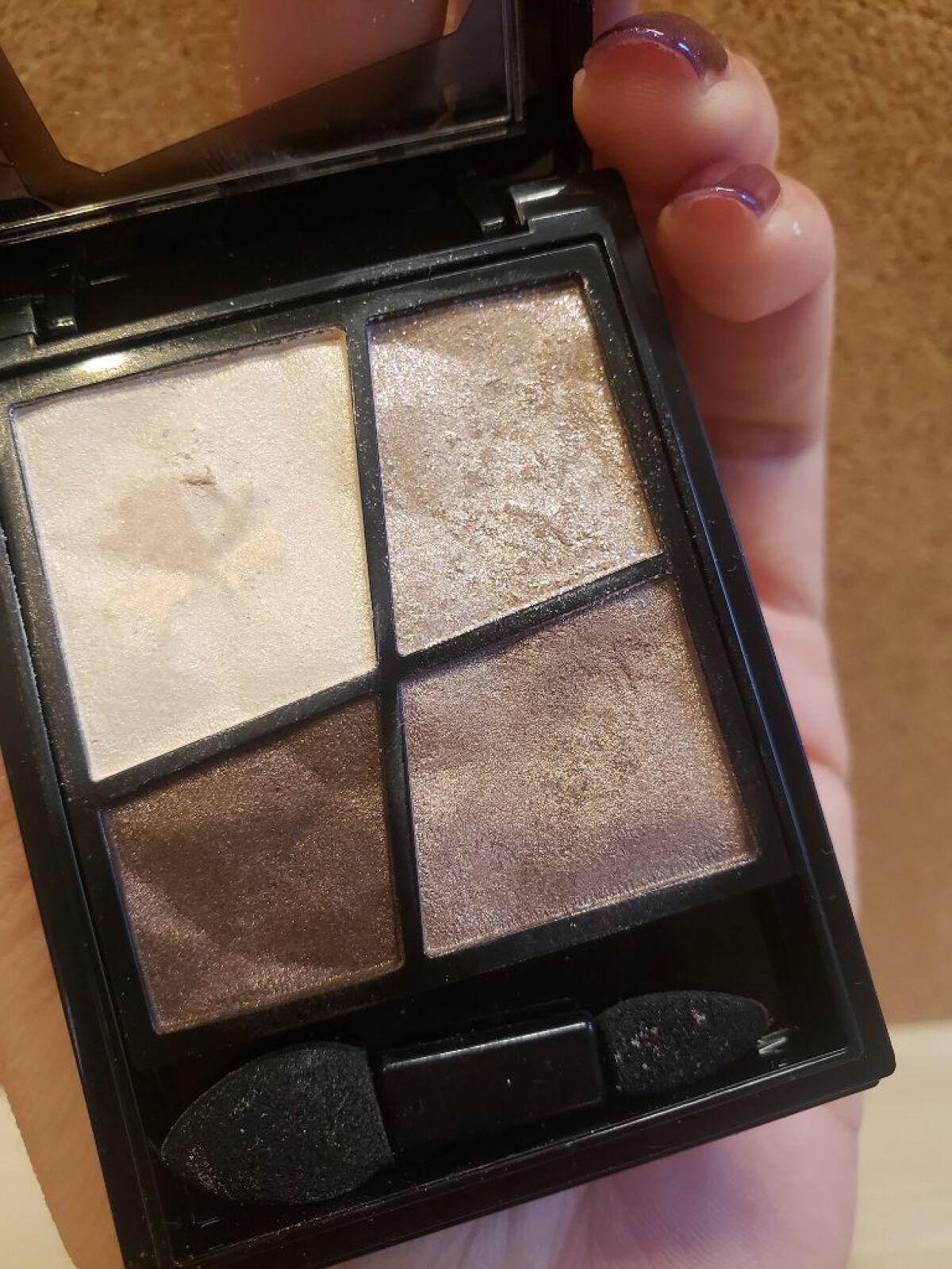 ブルベ向けシャドウしてよく紹介されているこちら使ってみた 全体的に薄めの発色・濃さが欲しいので、右下は指塗りすることが多い 色味が派手でないので、オフィスメイクに使える