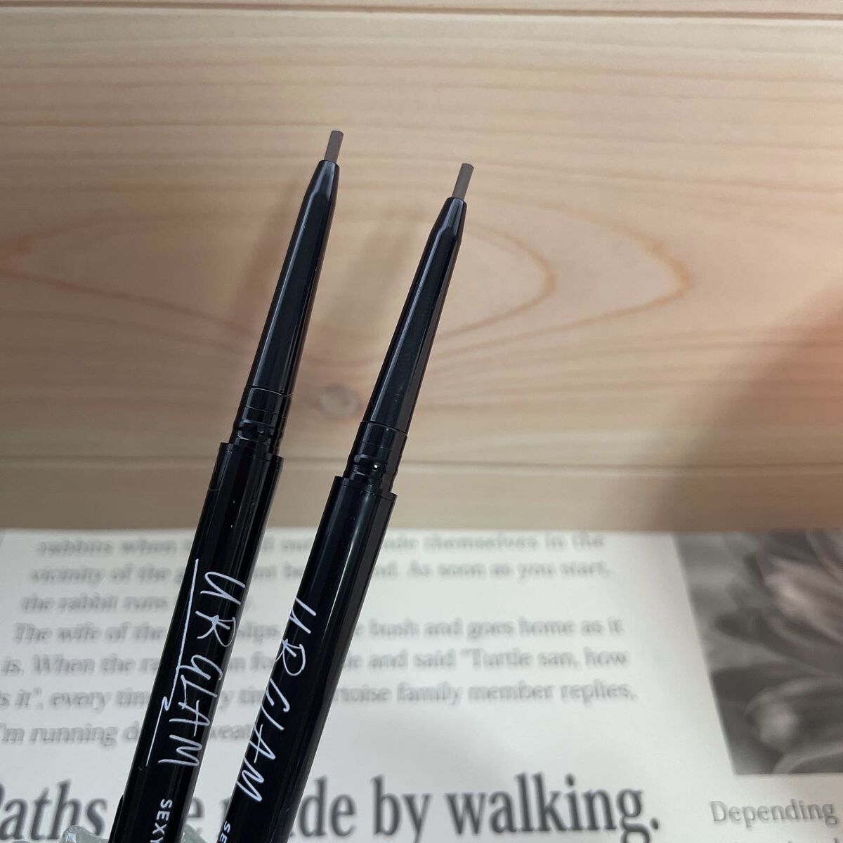 コスパ良し、発色良しのアイブロウペンシル! ずっとUGのを使っていて、新しくでたUGTも試してみたので比較しました! UGT アイブロウペンシル GD 01cはUGと比べると芯は太めで、しっかり発色してくれます! また折れにくいです🙆♀️ 100均とは言えど、発色も持ちもいいのでおすすめです!