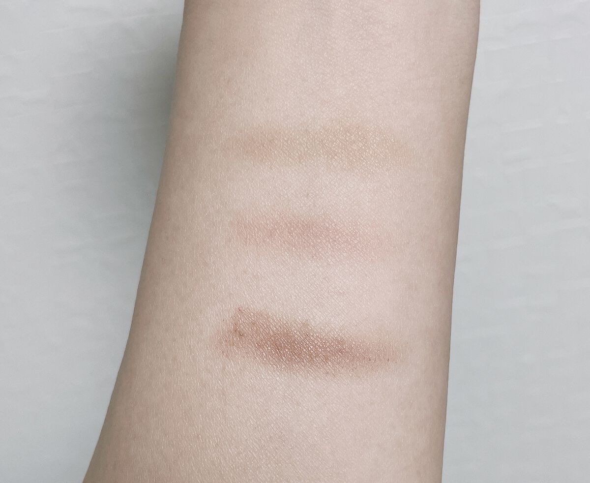 CEZANNEノーズ&アイブロウパウダー04モーヴブラウン¥638○色味・左:オレンジベージュオレンジすぎてノーズシャドウには合わない。他のカラーと混ぜて眉毛オンリーで使うのが良さそう。・中央:赤みパープルかなり赤みが強いので赤みのある髪色じ...