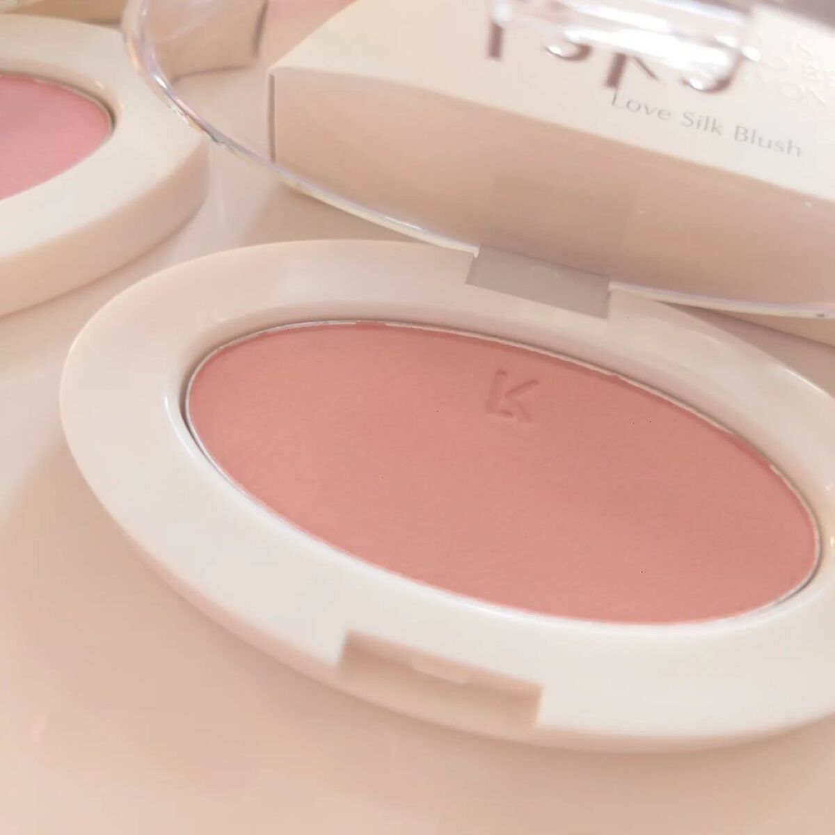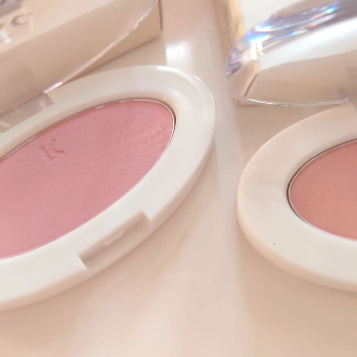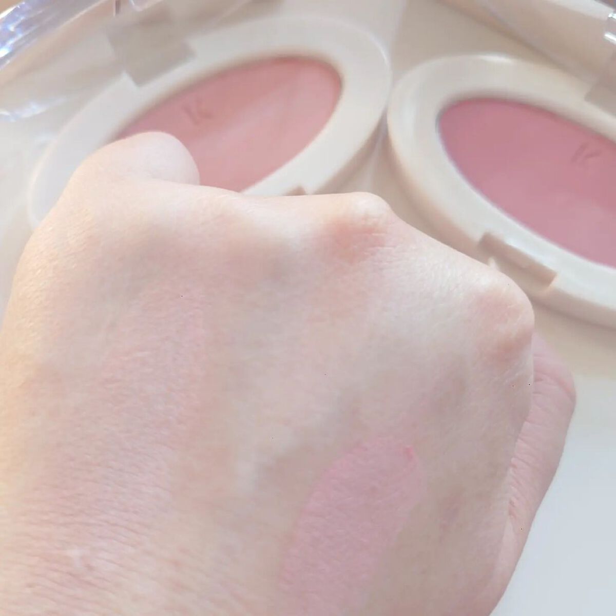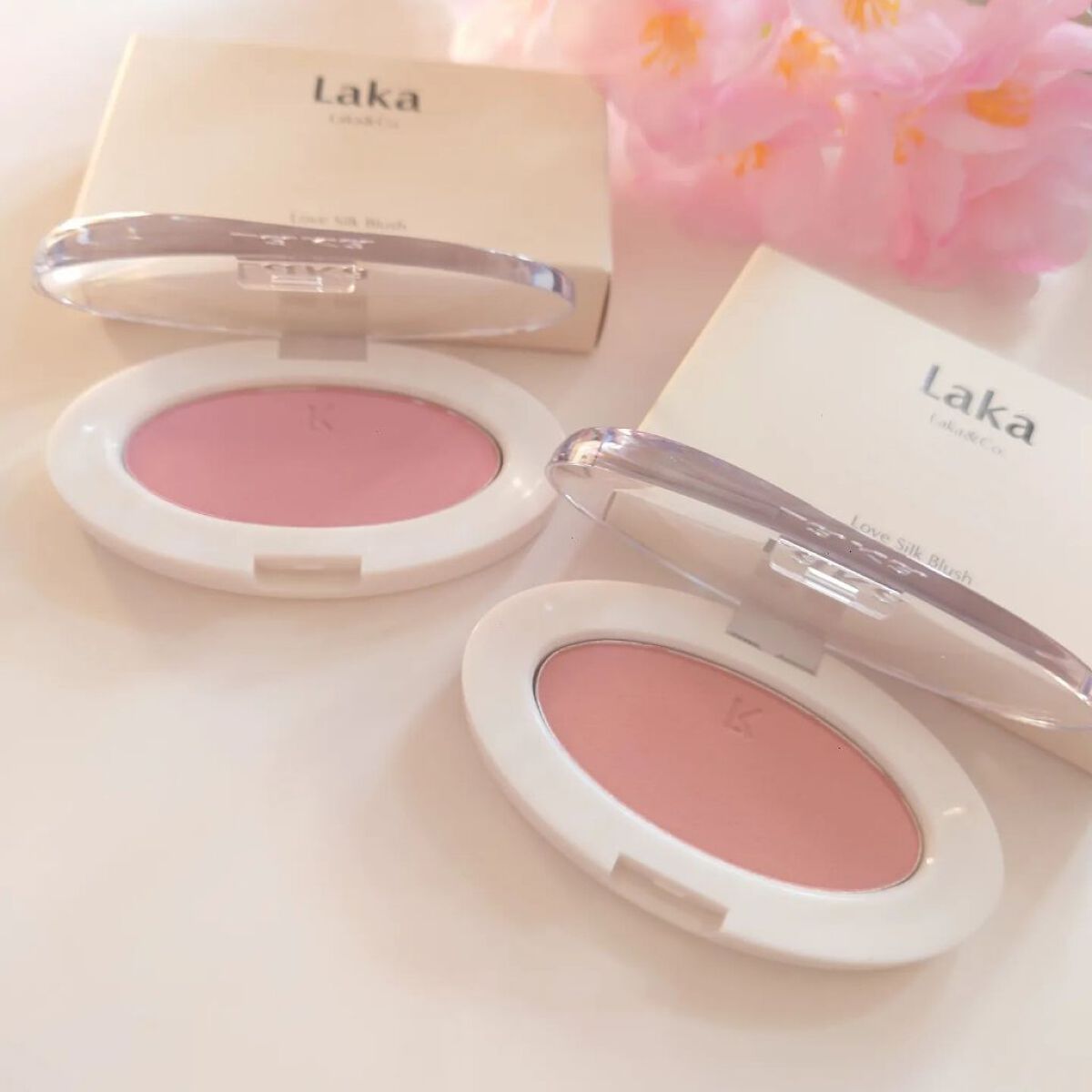 LAKAのチークは丸いコンパクトのシアータイプも使っていますが、そちらと比較するとこちらの方がしっかり発色してくれます LAKAのチークは若干パウダリーなので、リキッドやクッション、BBクリームなどのしっとり系のファンデに重ねるとしっかりFIXして色落ちしにくていいかなと思います 私はフィックスミストを使ったあと、サッとその上からチークをもうひと重ねして使っています (その方が色持ちが良いです)