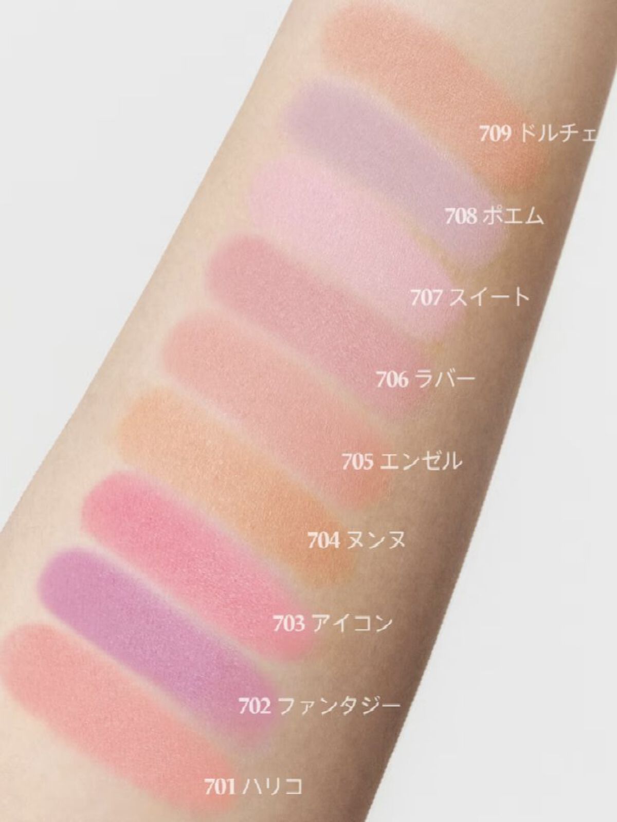 最近またハマっているチーク🦋💕 前は706ヘビロテしてたけど、今は701が自分の中で熱い❤️🔥 701 Harico コーラルピンクっぽい🌸 705 Angel 優しげピンク💕