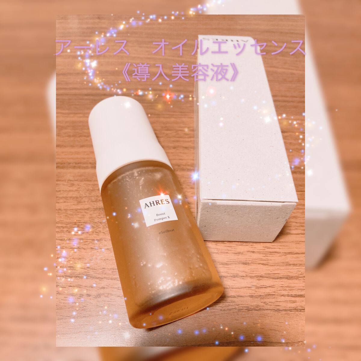 AHRES(アーレス)ブーストポンパーX提供していただきました二層式の導入液です化粧水を使う前によく振って使います洗顔後に2.3滴なじませます美容液のようなうるおいを感じますポンプのように引き込むポンパーX機能TMが搭載されているそうですスク...