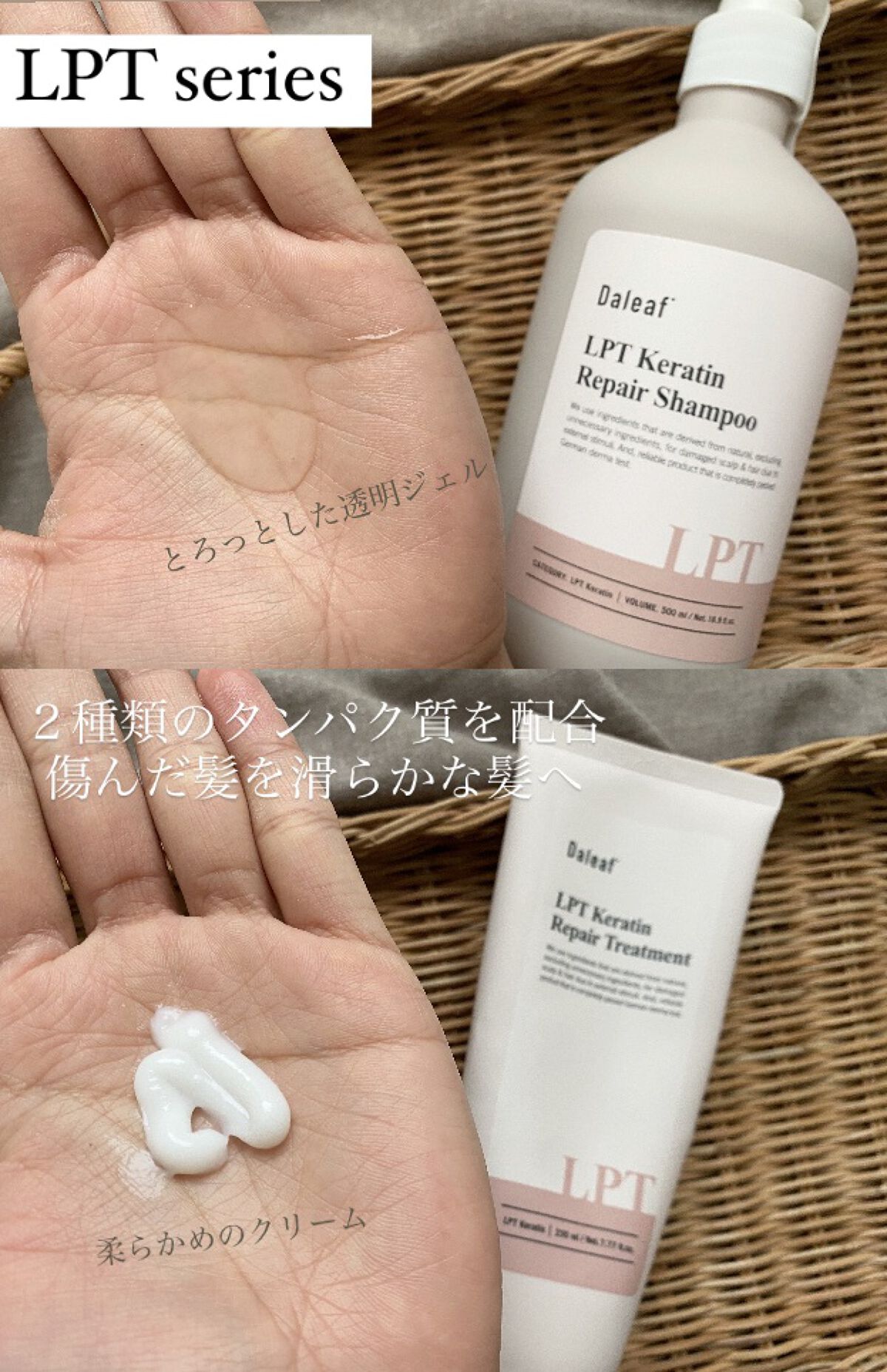 韓国ヘアケアブランド【Daleaf(ダリーフ)】 パッケージがリニューアルした[LPTケラチンリペアシャンプー]と[LPTケラチンリペアトリートメント]を使ったらとっても良くて✨ 低分子と高分子タンパク質がダブルで配合されているので、髪への浸透力がすごい! 洗い流した後の髪はとぅるとぅる💓 サロンレベルの仕上がりで、髪のなめらかさと指通りの良さを実感できちゃいます🙌