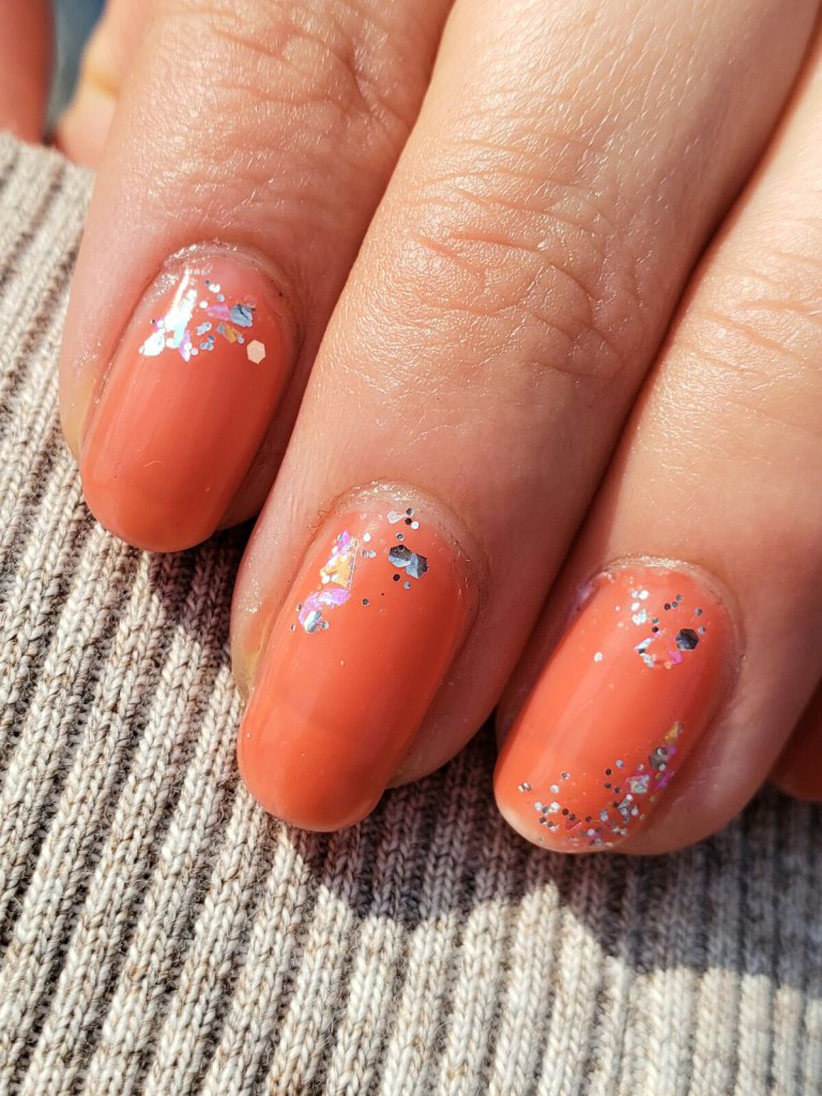 ポイントとしては、ガラスフレンチ部分は一息でやること…かな。 手順でいうと②~④だね。ベースにしたローズミルクティーが乾いたら、フレンチラインをひくところからメタルホロを貼り付けるところまでサッサッサッと💨 下準備として、メタルホロはちょうどいい大きさに切っておくと作業がスムーズ◎ それから、メタルホロを使うときは下にティッシュかキッチンペーパーを敷いておくと片付けもラク◎ 指一本ずつの作業だから、ネイルにかかる時間がかなり長くなるけど、やっぱりガラスフレンチは可愛い🖤