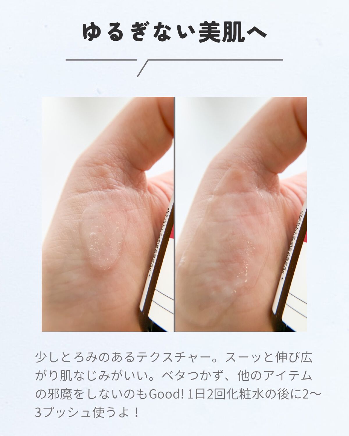 | スキンケアランキング第63位 | すこしとろみのあるテクスチャーで、伸び肌馴染み共に◎べとつかないけどしっとり保湿してくれます! | 詳細を見る | |