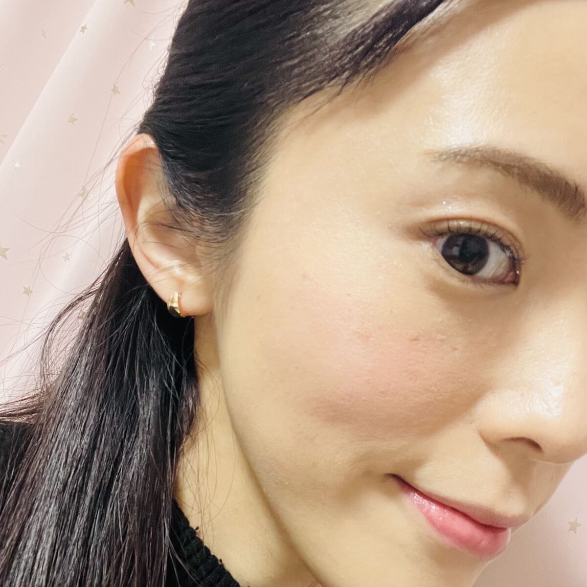 #rom&ndのハイライト♡写真じゃ分かり辛いですが、、ほっぺの高めの位置に自然な光沢!写真は加工なしです!ラメが細かいので、ギラギラしすぎない、ナチュラルな光沢がお気に入り♡#ヴェールライター#moonkissedveil#ハイライト#ピン...