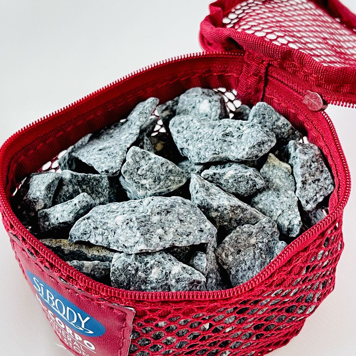 - 岩手山の麓、遠野でのみ産出される「角閃石」100%の 繰り返し使える天然石入浴料 ネットに入れたまま、お湯をはった浴槽に沈めるだけ。温めると遠赤外線を放出する角閃石*を採用しており、岩盤浴気分をお楽しみいただけます。 天然の鉱石で無色無臭なので、好きな香りのミネラルバスパウダーや、アロマオイルなどと一緒にご使用いただくことも可能です。 テクスチャー・香り:無香料 使用感:さめにくく、まろやかなお湯に *調査会社: 神奈川県産業技術センター (2010年3月19日調査実施)