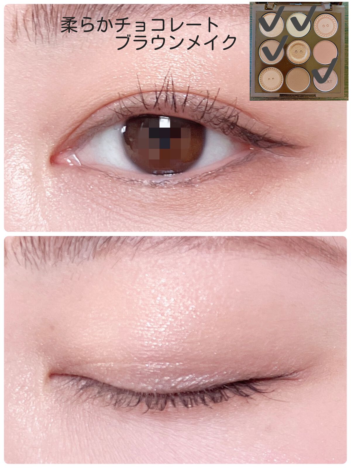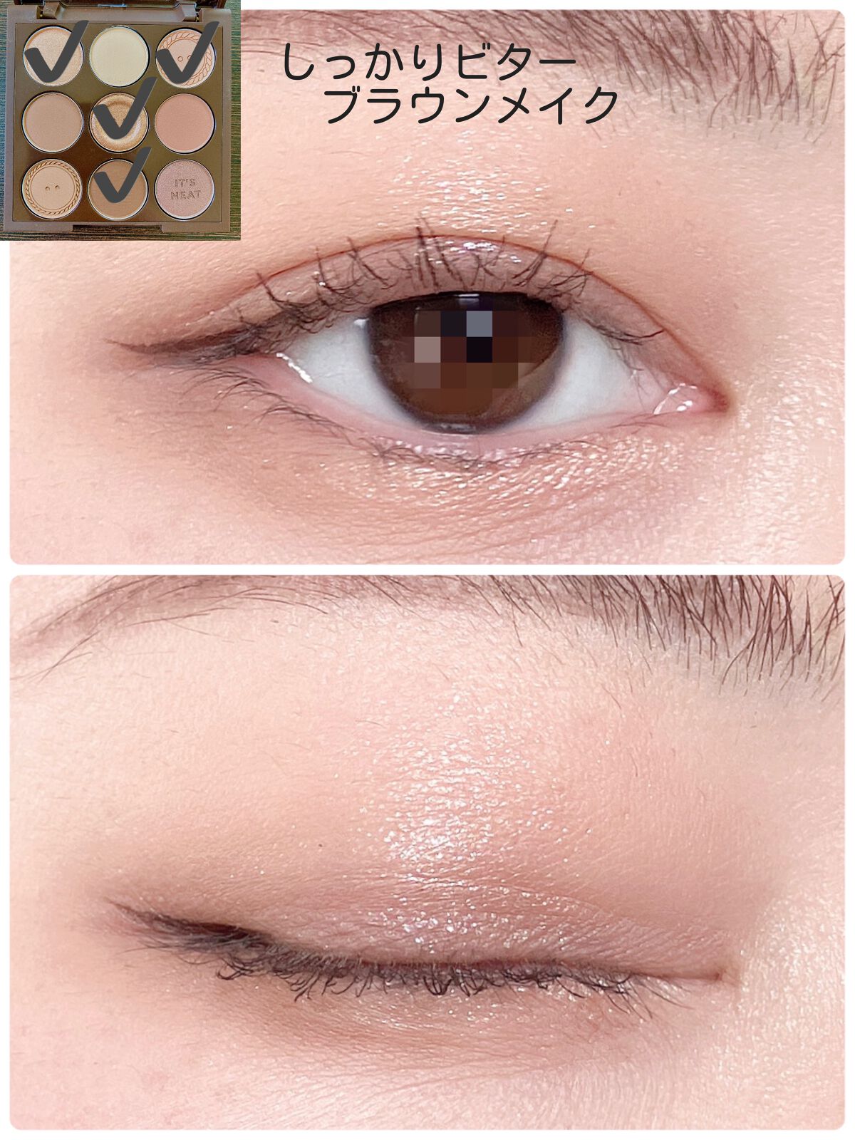 めちゃくちゃ使いやすい赤みブラウンのパレット❣️ ふんわり質感のマットが中心でオフィスやスクールメイクにもおすすめ! 濃淡がつけやすくて、ふんわりしたナチュラルメイクからしっかりブラウンさを感じるビターメイクまで色々楽しめるパレットです! ラメは1種類ですが、しっかり輝度のあるキラキララメを楽しむ事が出来ます🌸 シマーな2色艶感、パール感がしっかりあるので艶っぽく仕上げる事も! ベーシックなブラウンに少し赤みを足したカラーなのでブルベさんにもオススメです!!マットなカラーはなんなら眉毛も描けました🤭💕