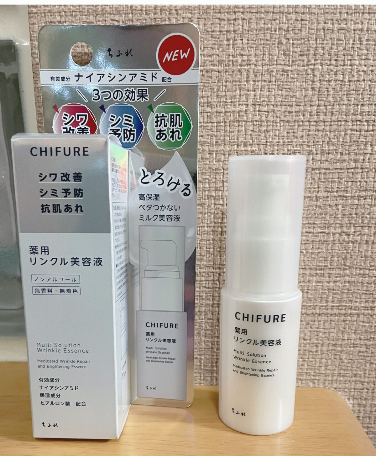 ちふれの本気。 シワ改善美容液。 有効成分 ナイアシンアミド 5% 配合 ・シワ改善 ・抗肌あれ*2 ・シミ予防*1 とろける高保湿 ベタつかないミルク美容液 乳液代わりにも使える保湿力と使用感。