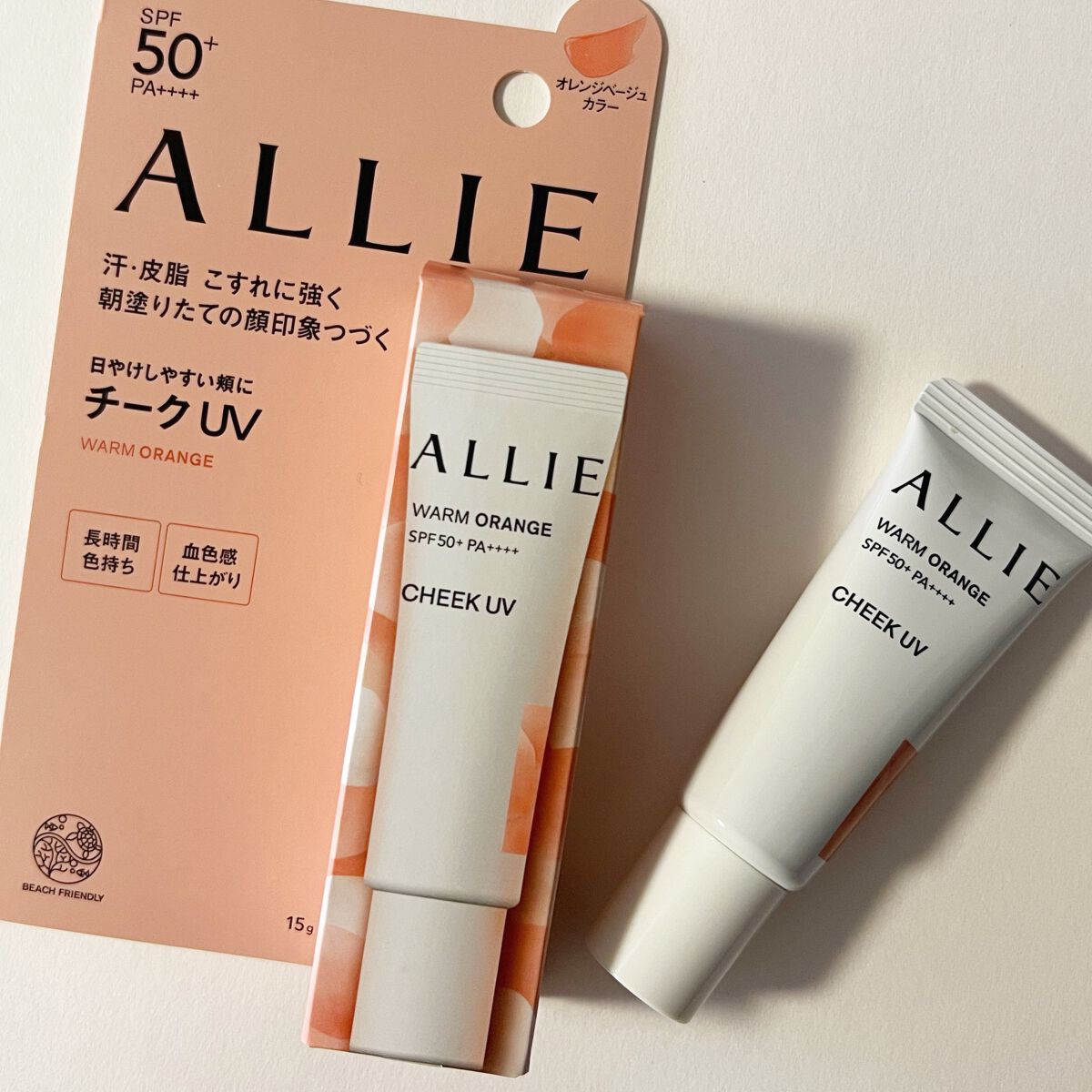 - ◆紫外線を浴びやすい、頬に使えるチークUV/鼻・頬に使える追いツヤUV ◆メイクの上から塗り直しとしても使える。 ◆汗・皮脂 マスクやタオルなどのこすれにも強く落ちにくい。 ◆「カラーUVヴェール技術」で、ベースメイクと混ざりにくく均一に密着。 SPF50+と感触の良さはそのままに素肌を活かした自然な色づきを両立! ◆8時間色持ち データ取得済み ※アリィー調べ。効果には個人差があります。 <基本情報> ・強力UV カット(SPF50+・PA++++) ・フリクションプルーフ:タオルやマスク等のこすれにも強く、落ちにくい ・スーパーウォータープルーフ:汗・水に抜群※²に強い機能 ※² アリィー商品内において LUCENT PINK(チーク 01) 自然に色づき血色感仕上がりの‟透け感ピンク” パッケージもピンクで、ポーチの中も華やぐメイクアイテムです WARM ORANGE(チーク 02) ヘルシーな血色感仕上げの‟じんわりオレンジ” じんわ~りと血色感を与えてくれるから、素肌を活かした自然な仕上がりに TRANSLUCENT(ラスター) ツヤ感を演出する‟シマーカラー” 鼻や頬にハイライトとして使うことで長時間ツヤが持続します